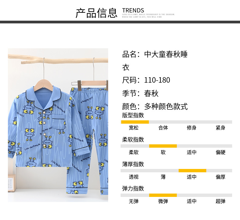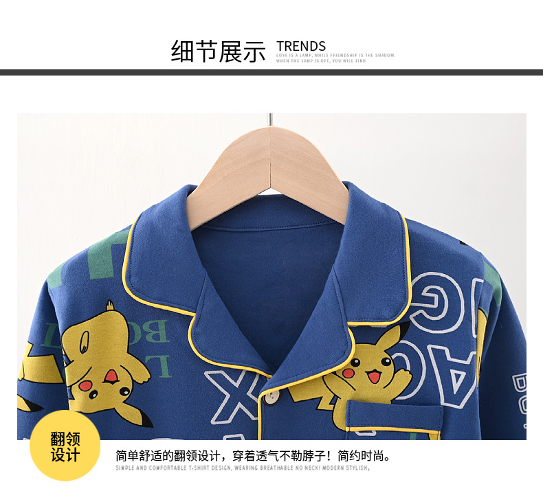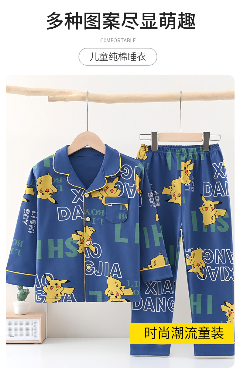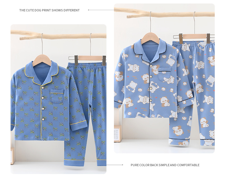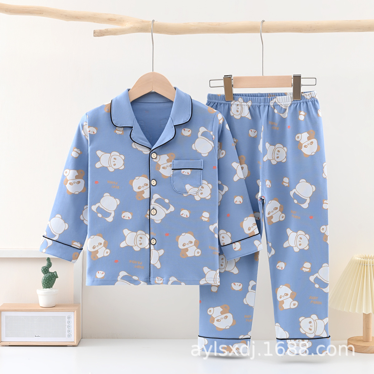 100 면 어린이 옷깃 파자마 대형 어린이 봄 · 가을 코튼 홈 옷 소년 · 소녀 긴 소매 속옷 세트스토어 가기