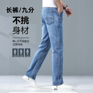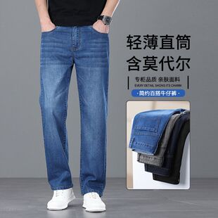 2025 가을 겨울 신상 고급 유럽풍 남성 캐주얼 루즈핏 스트레치 일자핏 라이트 럭셔리 비즈니스 기모 데님 팬츠스토어 가기