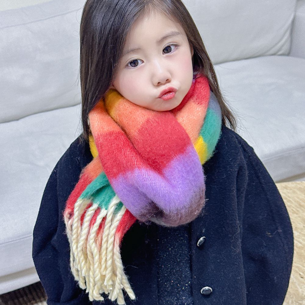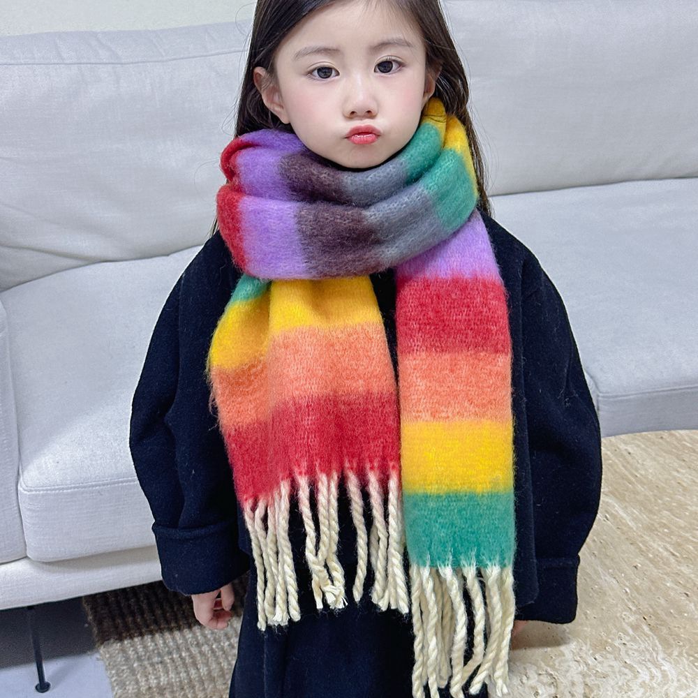 가을과 겨울을위한 도파민 컬러 스트라이프 컬러 매칭 술 스카프 부드러운 피부 친화적 인 따뜻한 감기 방지 어린이 긴 스카프