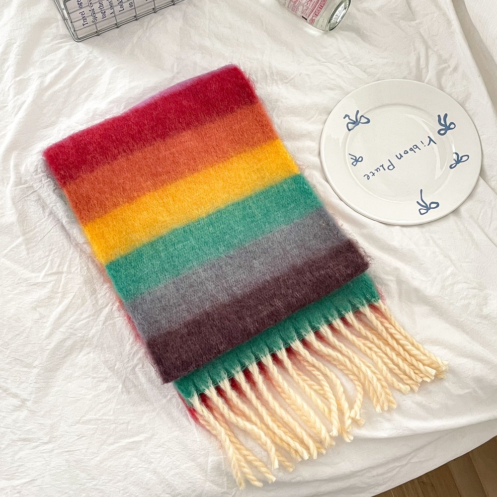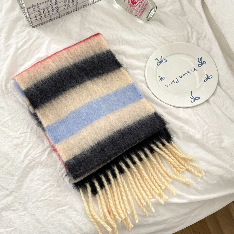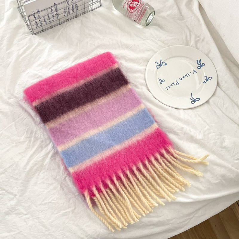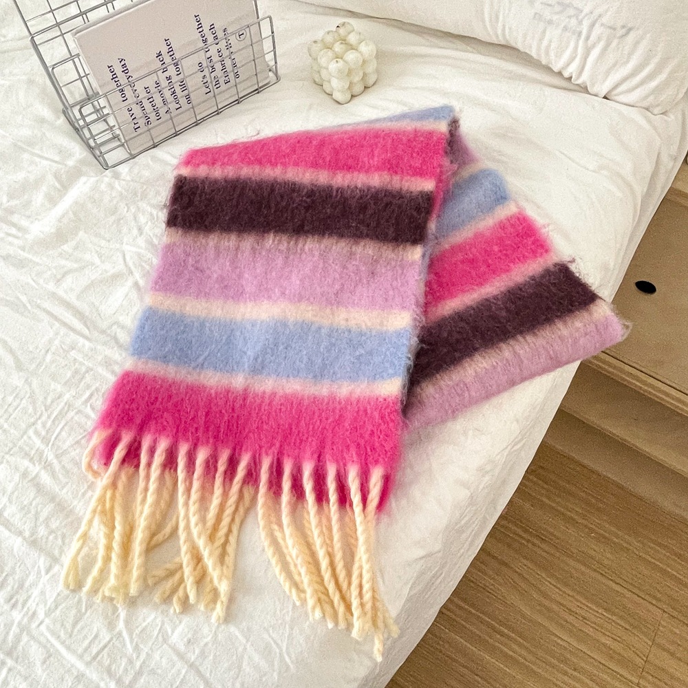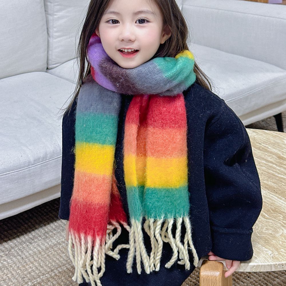 가을과 겨울을위한 도파민 컬러 스트라이프 컬러 매칭 술 스카프 부드러운 피부 친화적 인 따뜻한 감기 방지 어린이 긴 스카프스토어 가기