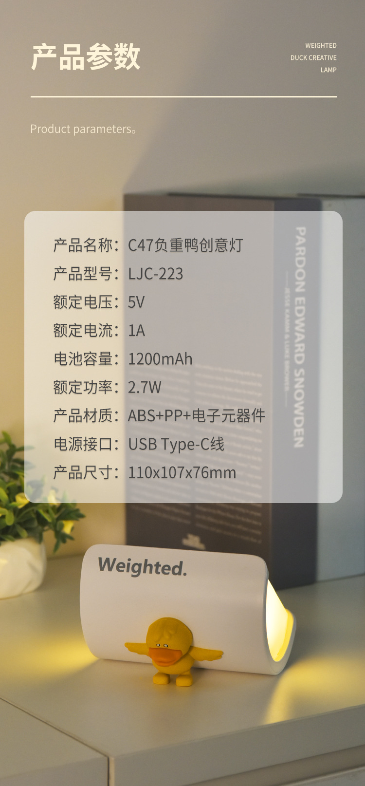 [商品名称] C47负重鸭创意灯(英文名:Weighted Duck Creative Lamp)
