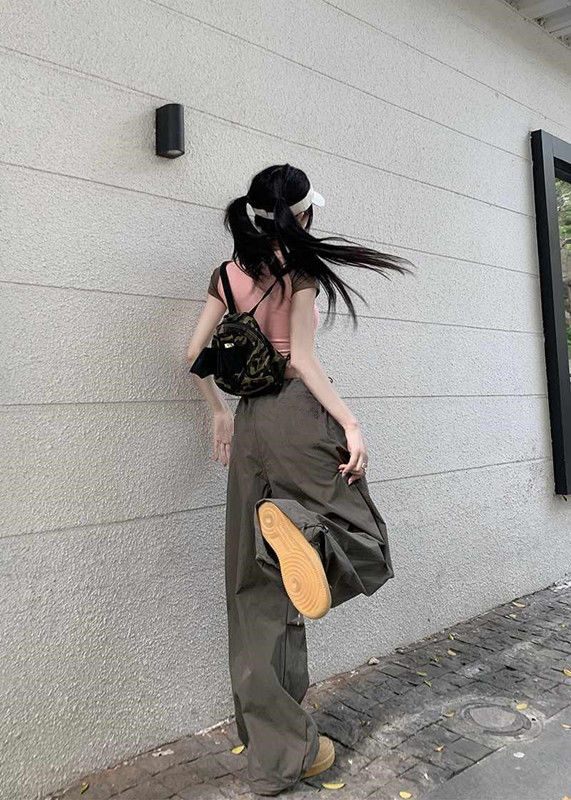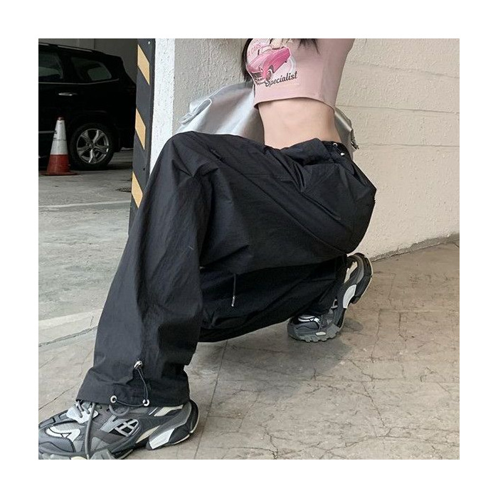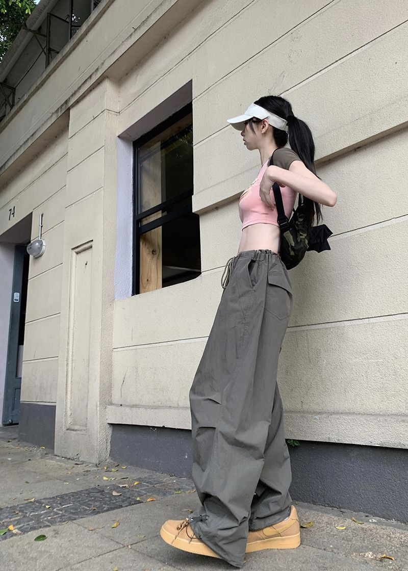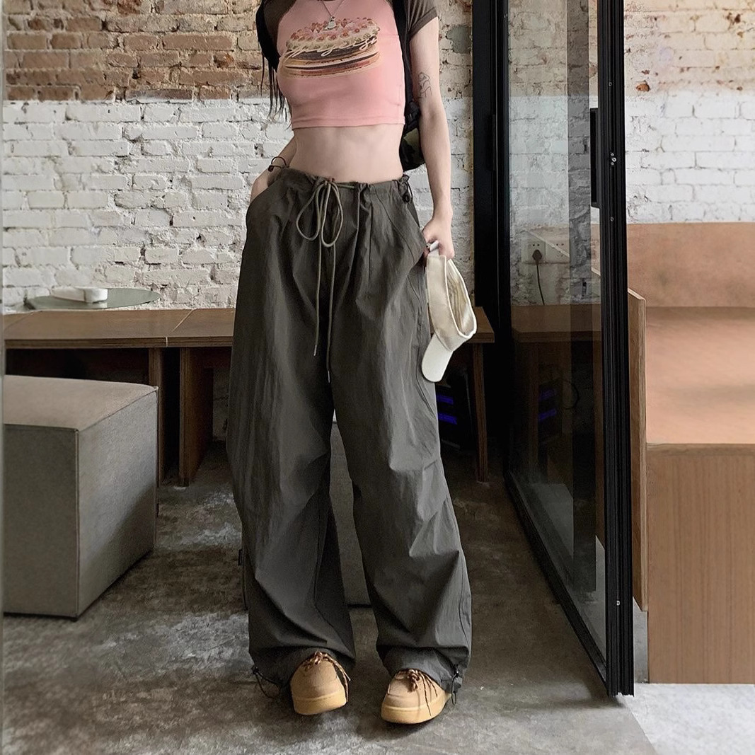 봄과 여름 복고풍 툴링 높은 허리 넓은 다리 바지 여성 서랍 한국 스타일 느슨한 슬리밍 캐주얼 스트레이트 트렌디 한 바닥 트렌디 팬츠
