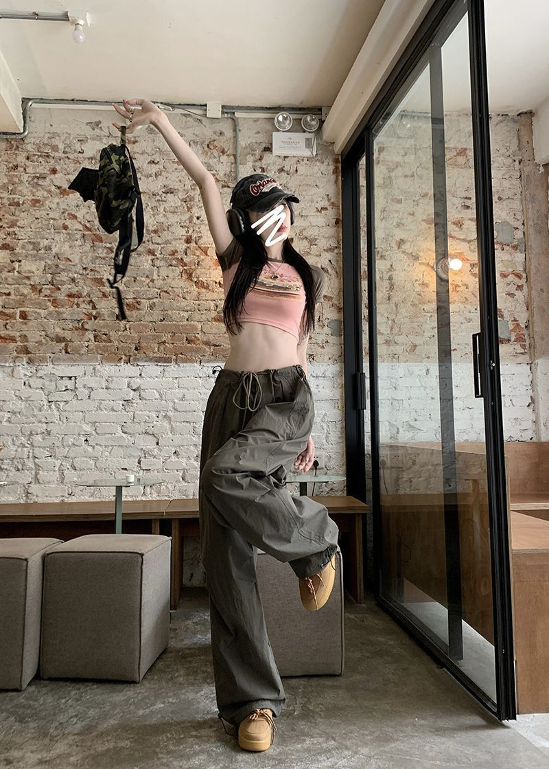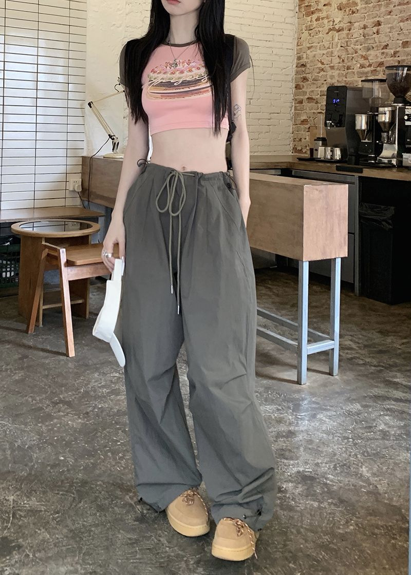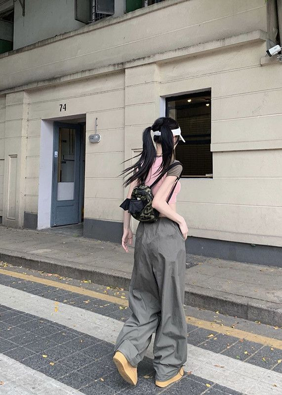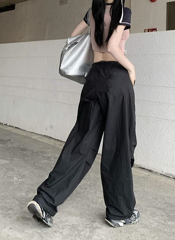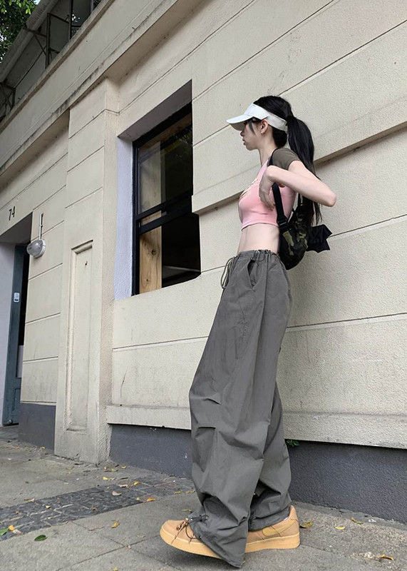 봄과 여름 복고풍 툴링 높은 허리 넓은 다리 바지 여성 서랍 한국 스타일 느슨한 슬리밍 캐주얼 스트레이트 트렌디 한 바닥 트렌디 팬츠스토어 가기
