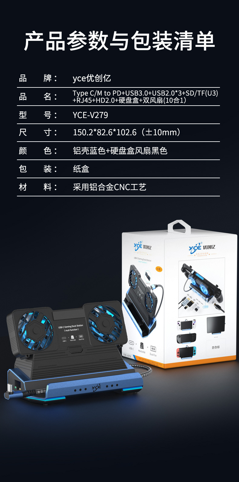 • V279 하드 드라이브 인클로저 + 탈착식 팬 10-in-1