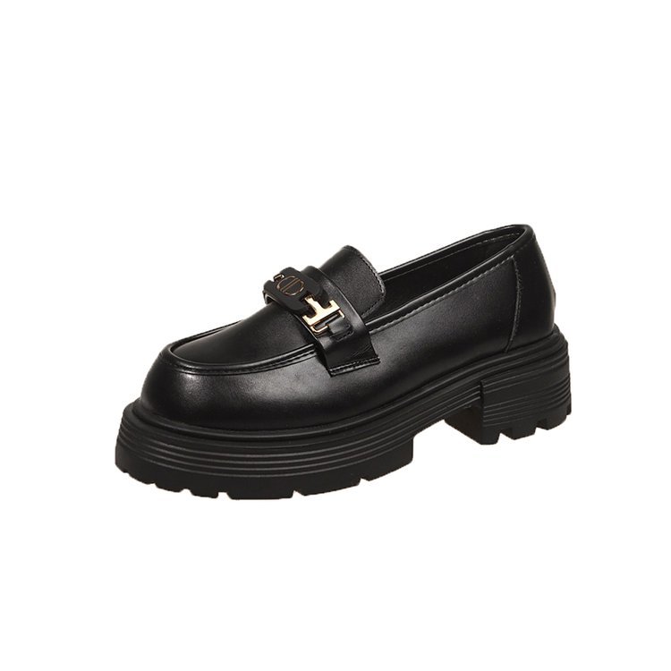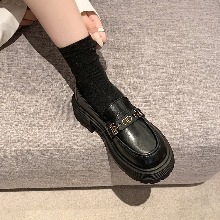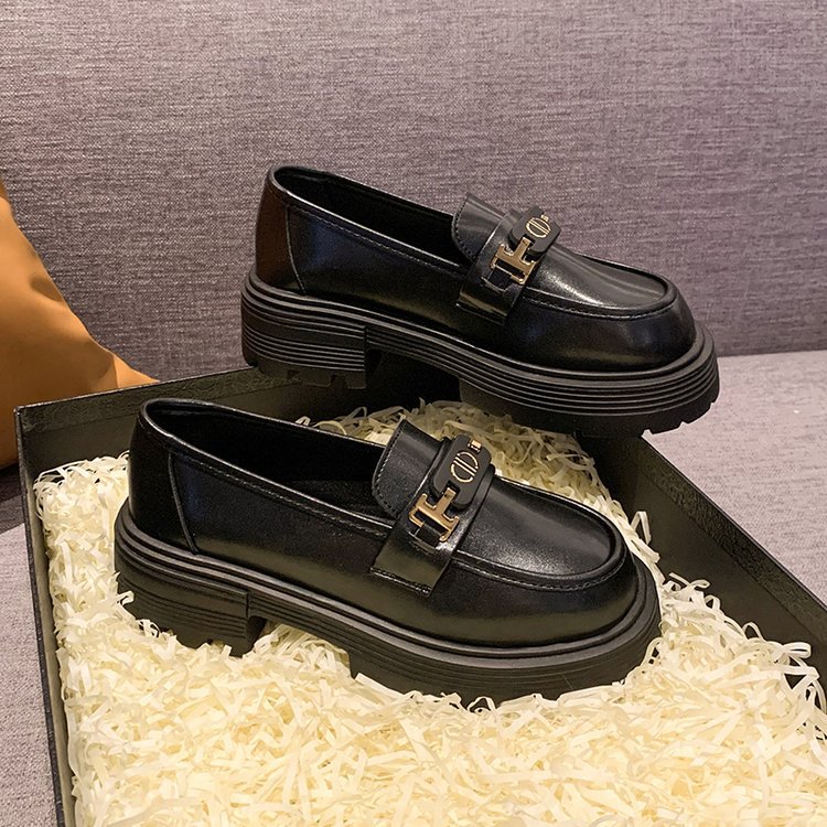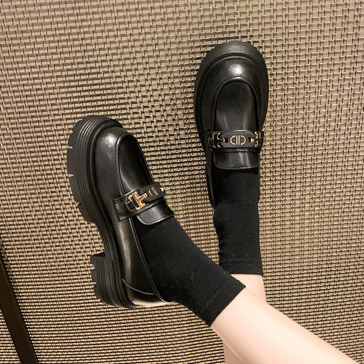 로퍼 여성의 2024 새로운 가을과 겨울 두꺼운 유일한 복고풍 슬립-작은 가죽 신발 영국 스타일 블랙 유니폼 JK 싱글 신발스토어 가기