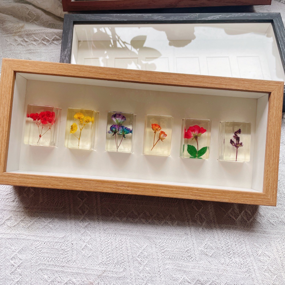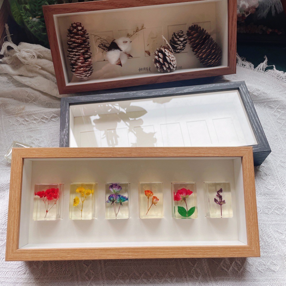 母亲节团建干花相框手工diy木质中空立体双面透明亚克力摆台批发