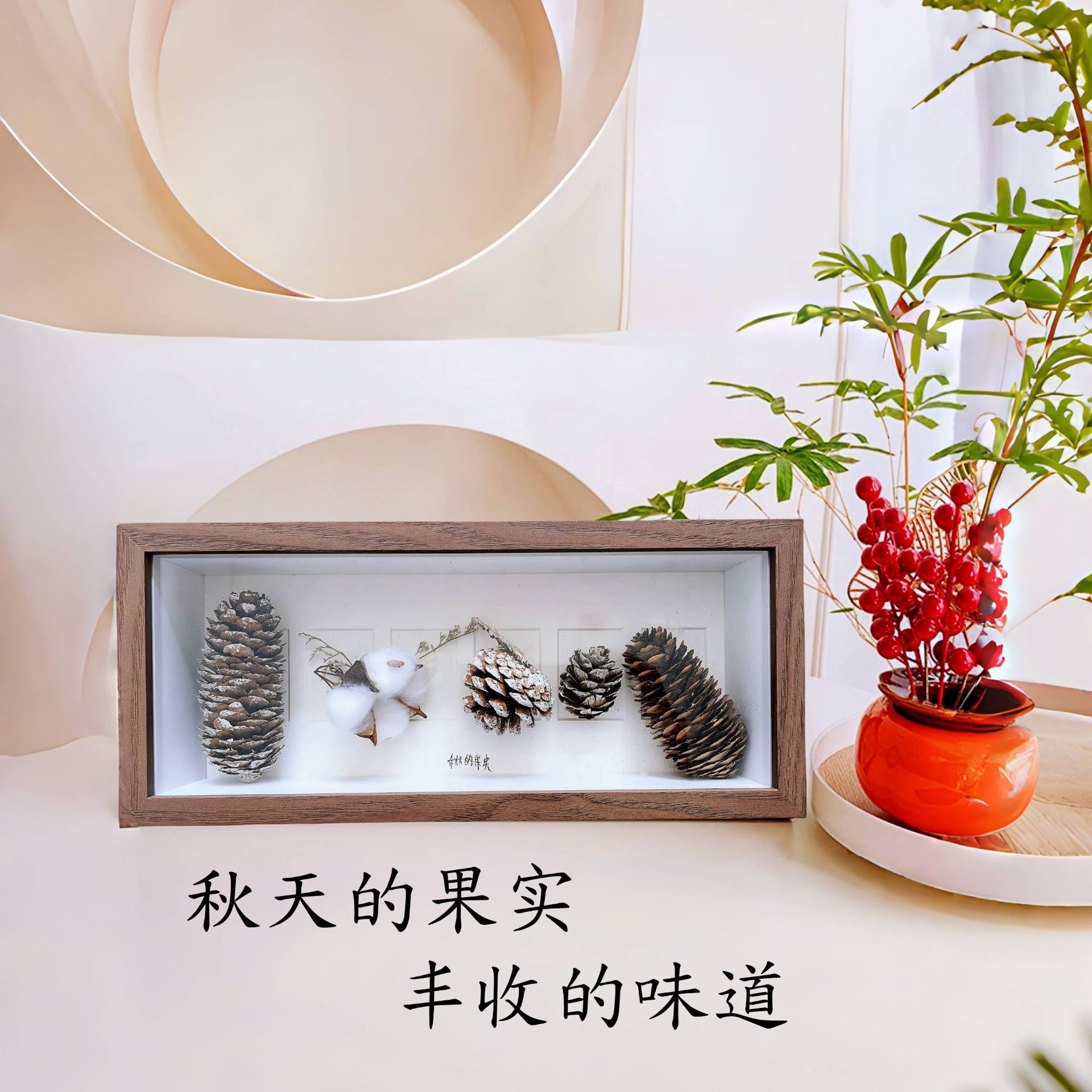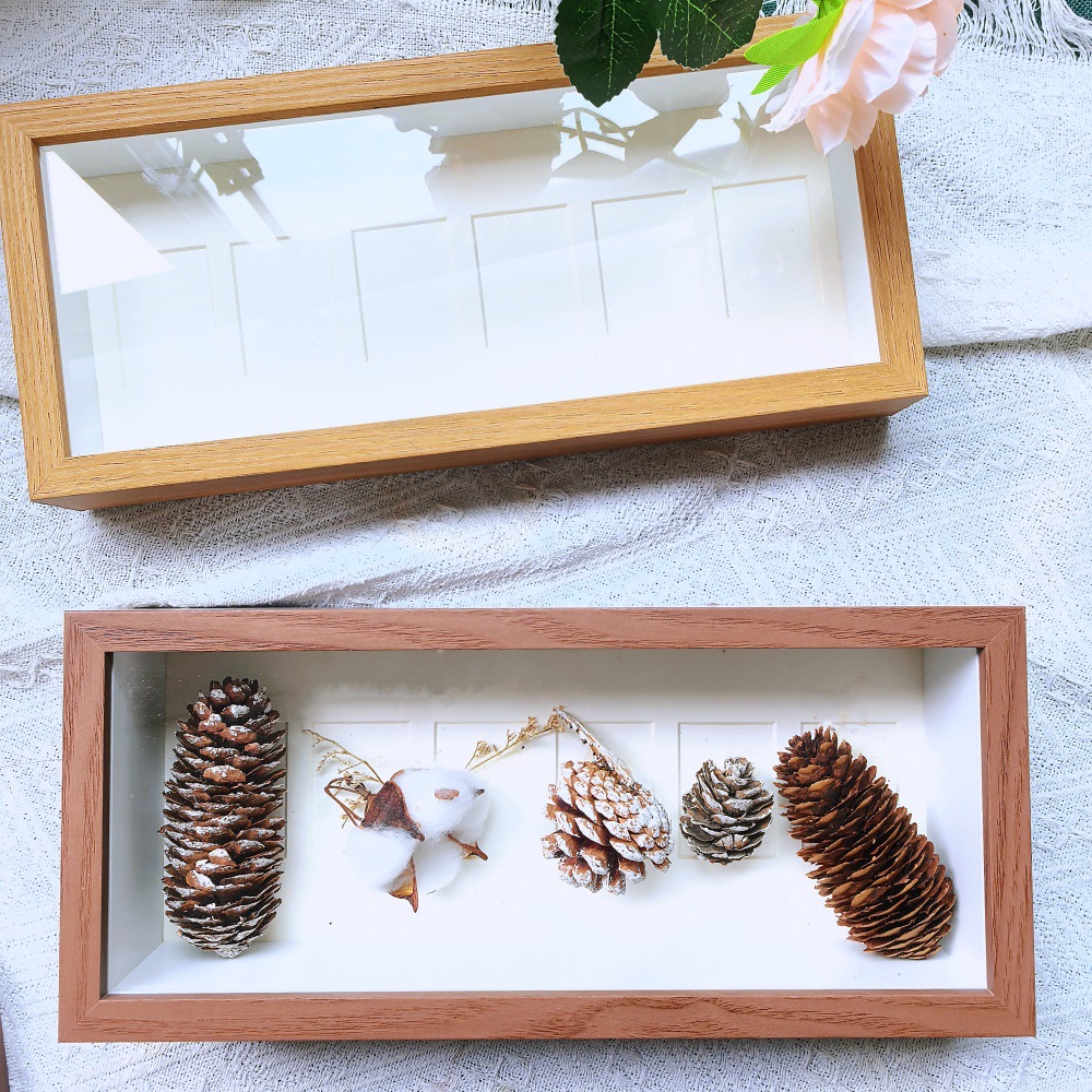 北欧木质相框手工DIY10宫格6孔贝壳昆虫植物果实标本中空摆台画框