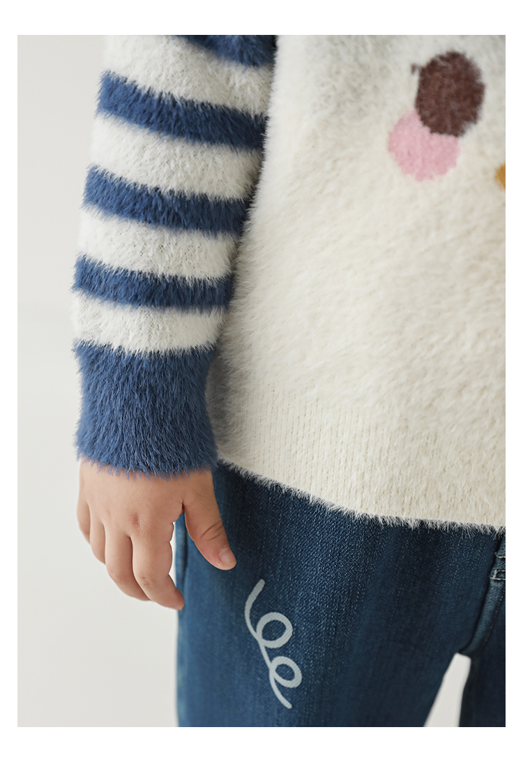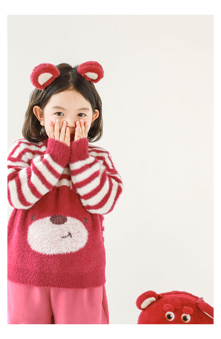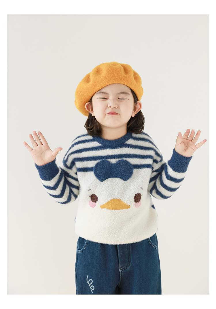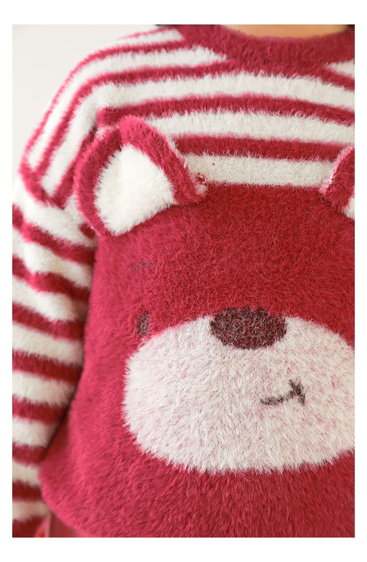 Wurib 11 소녀 작은 동물 스웨터 겨울 스티칭 컬러 참깨 도트 자카드 따뜻한 어깨 재킷스토어 가기