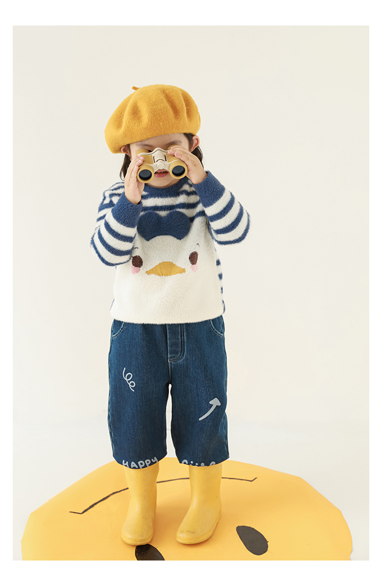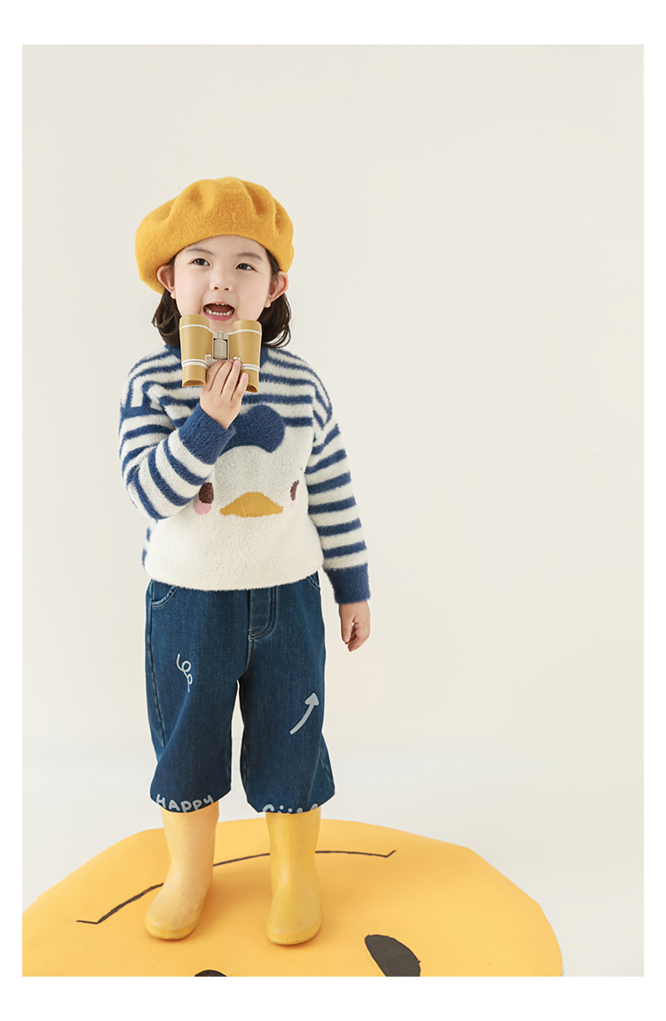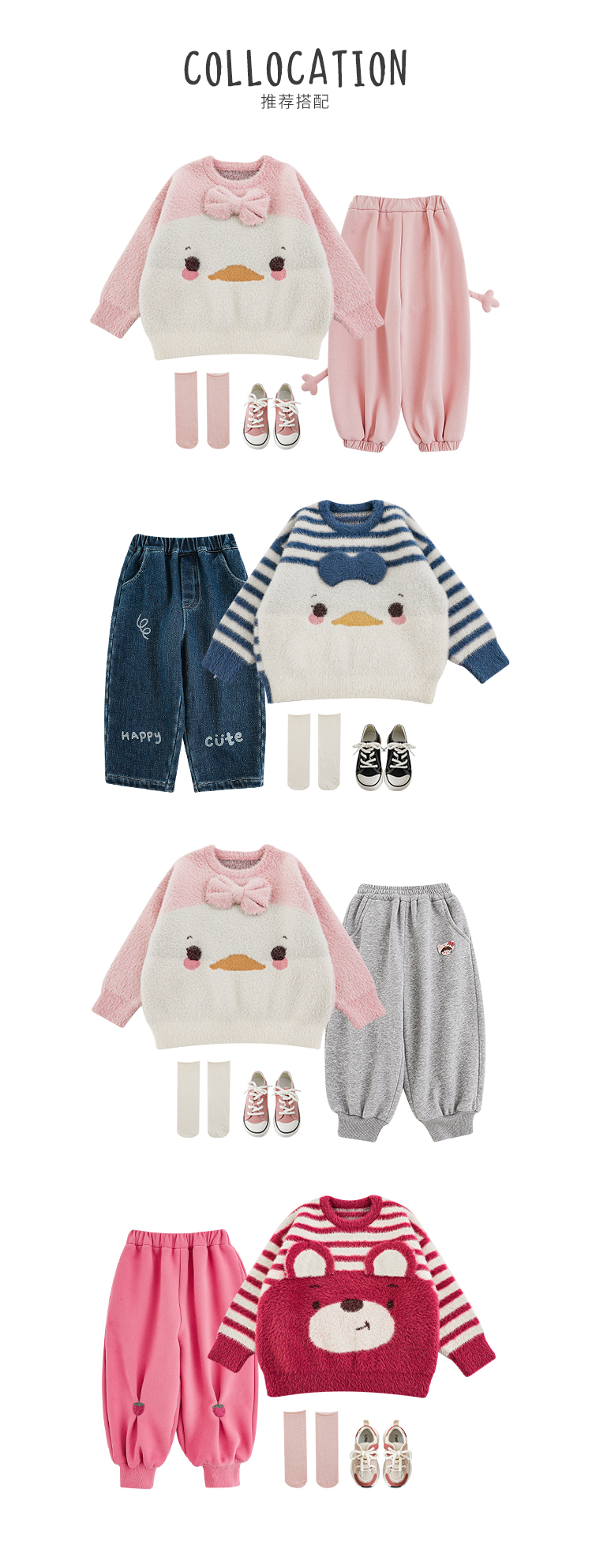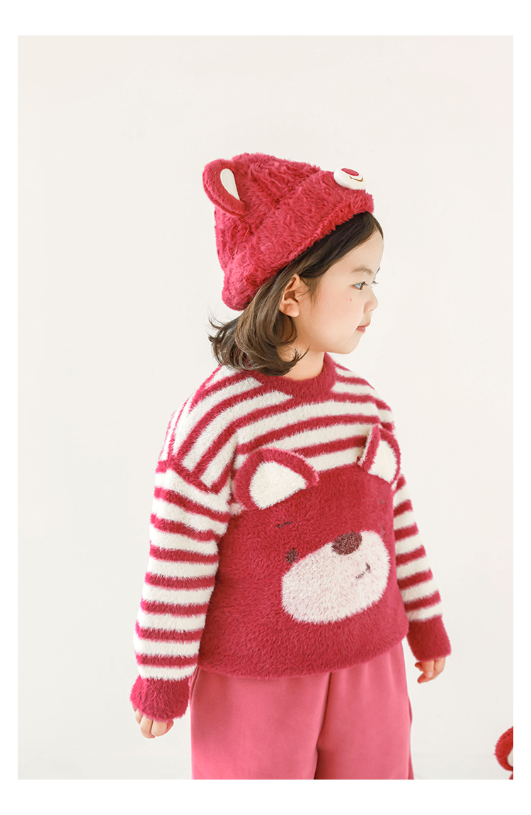 Wurib 11 소녀 작은 동물 스웨터 겨울 스티칭 컬러 참깨 도트 자카드 따뜻한 어깨 재킷스토어 가기