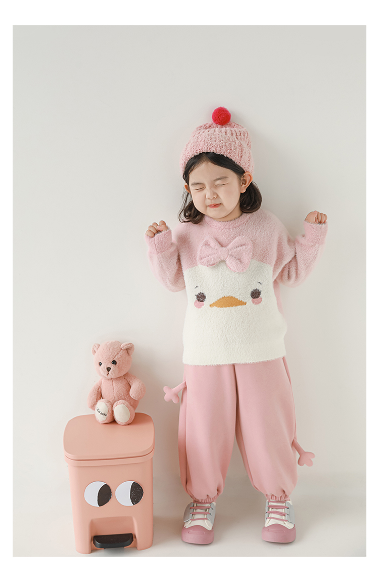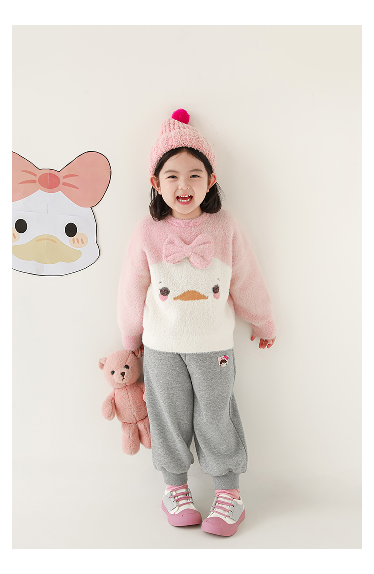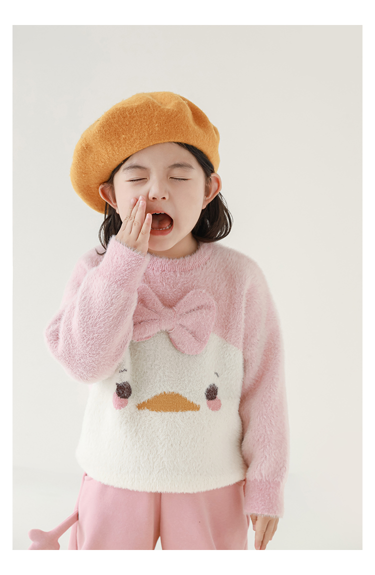Wurib 11 소녀 작은 동물 스웨터 겨울 스티칭 컬러 참깨 도트 자카드 따뜻한 어깨 재킷