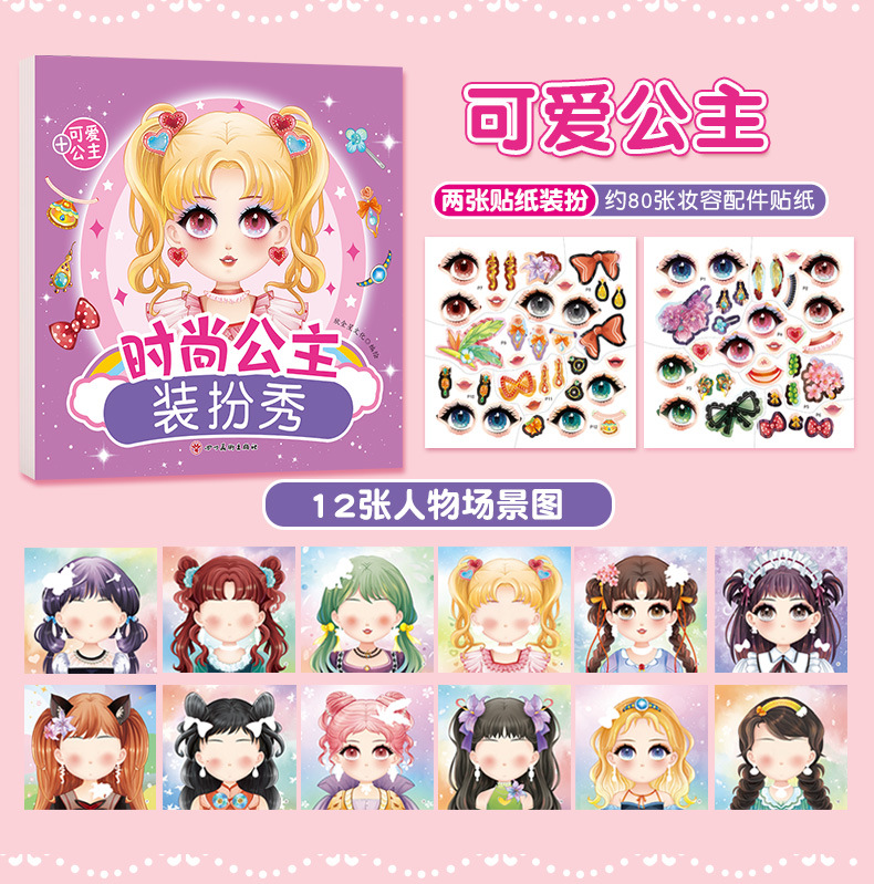 공주 원피스 최대 스티커 책 장난감 소녀 어린이 교육 장난감 3-4-5-6 세 아름다운 소녀 메이크업 책