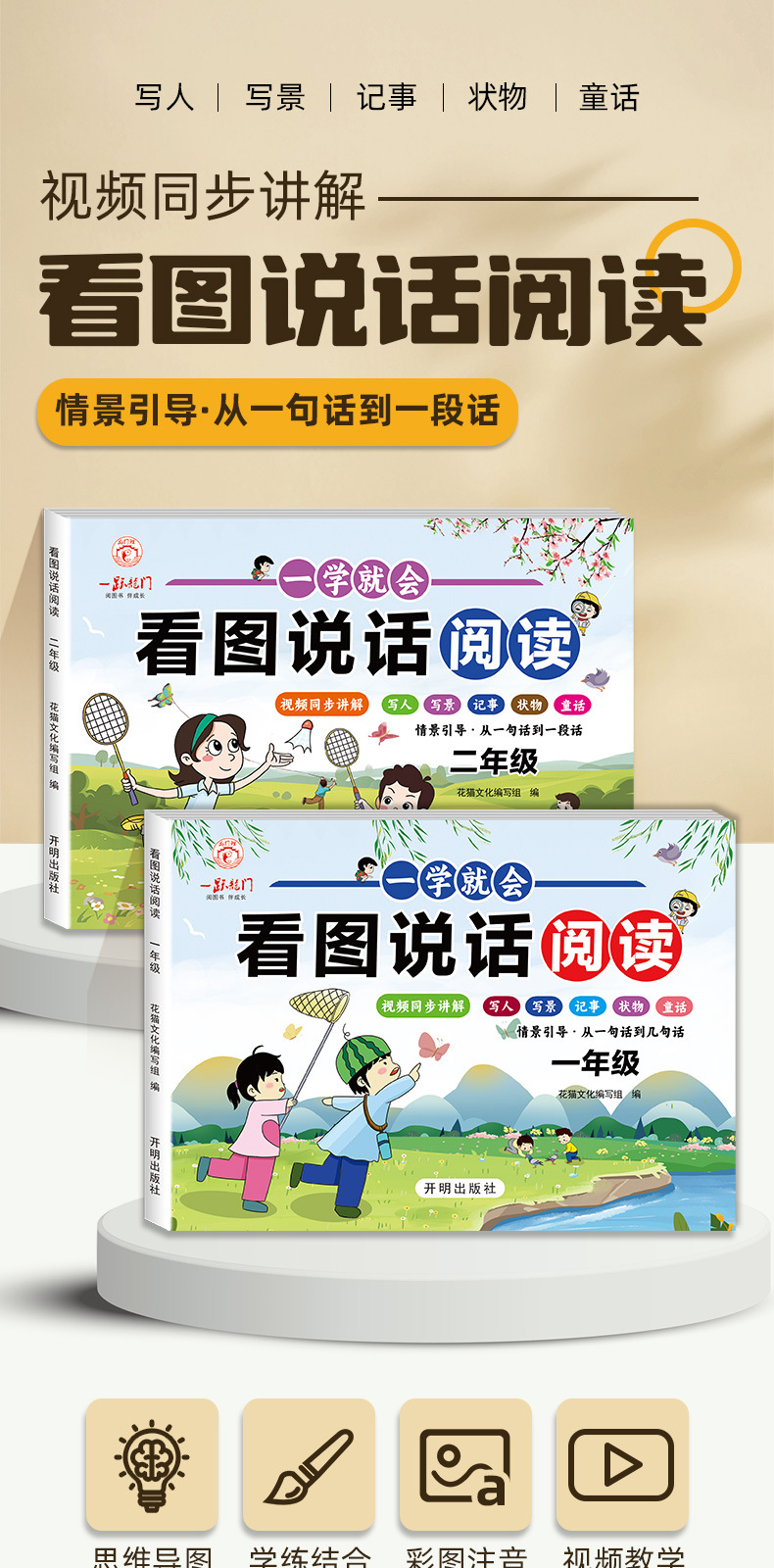 초등학생들은 그림을 읽고, 말하고, 3-6-8 세, 이야기, 그림책, 유치원 아이들이 그림을 읽고 단어를 씁니다.스토어 가기