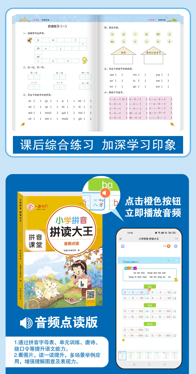 Xueba 교실 초등학교 병음 오디오 포인트 읽기 풀 에디션 철자 왕/자연 철자 1 학년 교과서