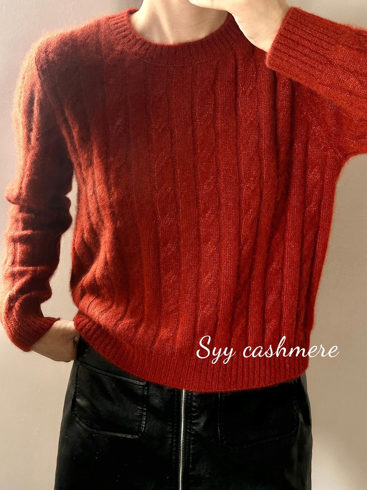 SYY 가을 겨울 여성 Consaini 화이트 공장 실크 캐시미어 크루 넥 카디건스토어 가기
