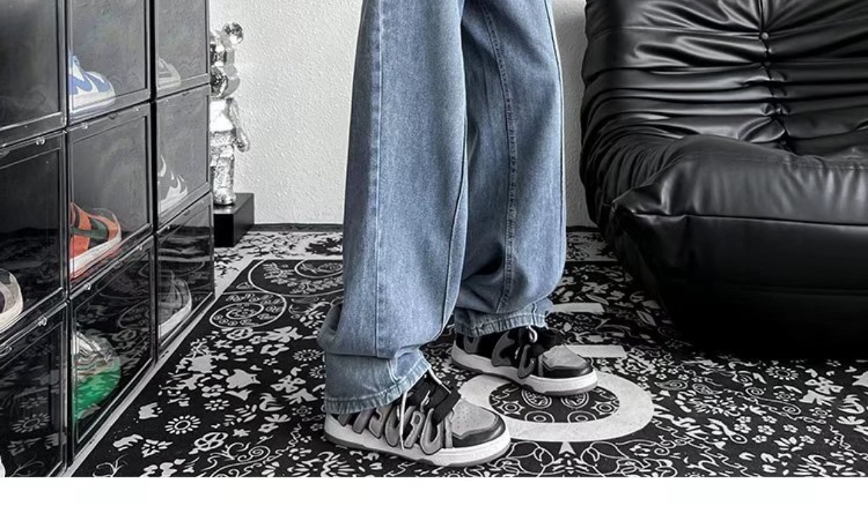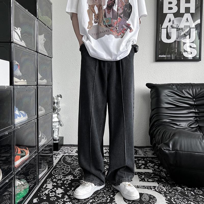 남성 청바지 홍콩 스타일 세련된 느슨한 일본 스타일 레트로 패션 브랜드 하이 스트리트 패션 스트레이트 딥 와이드 레그 팬츠