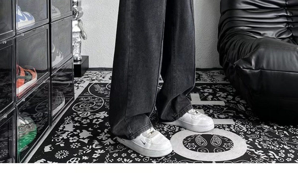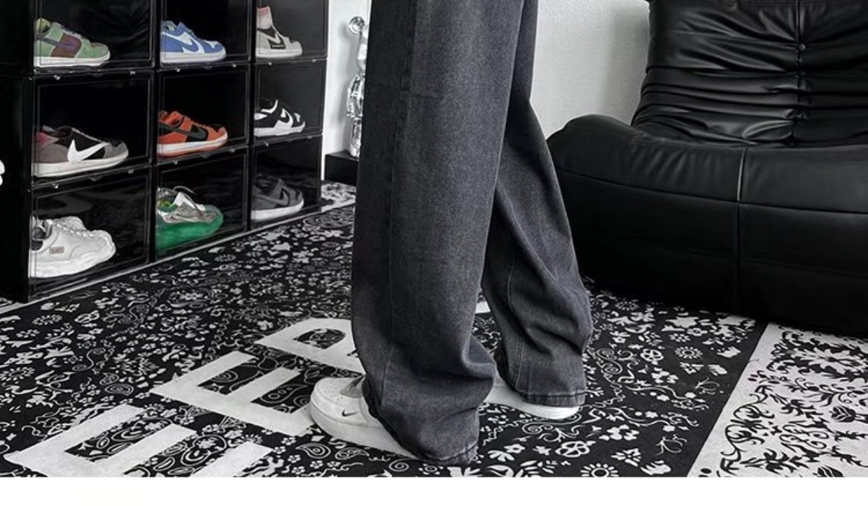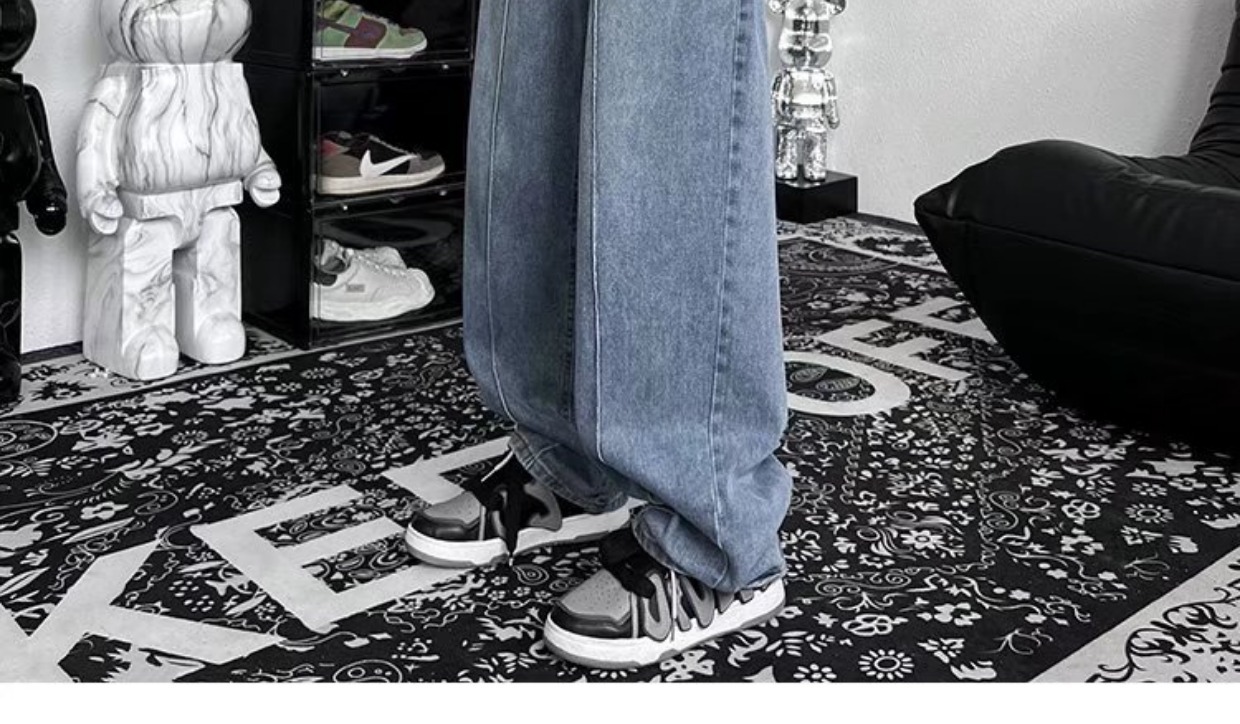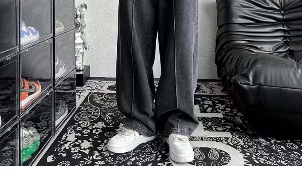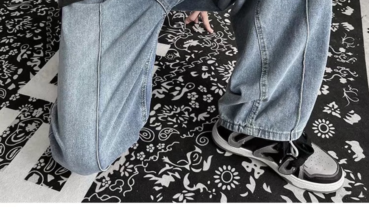 남성 청바지 홍콩 스타일 세련된 느슨한 일본 스타일 레트로 패션 브랜드 하이 스트리트 패션 스트레이트 딥 와이드 레그 팬츠스토어 가기