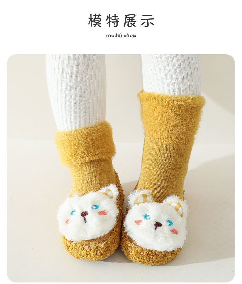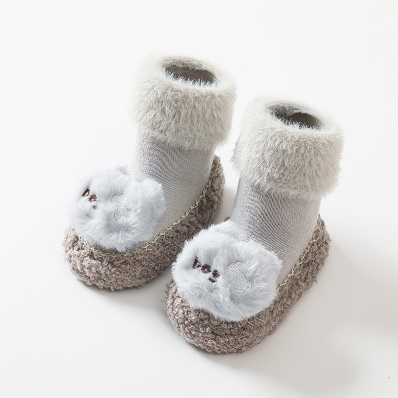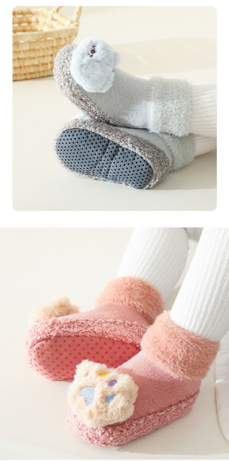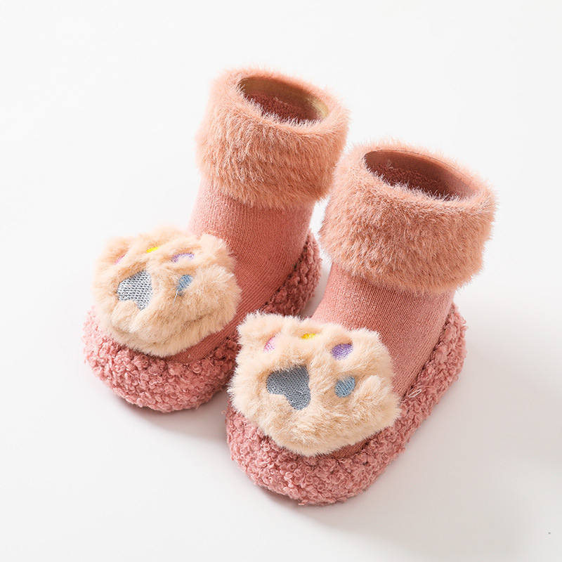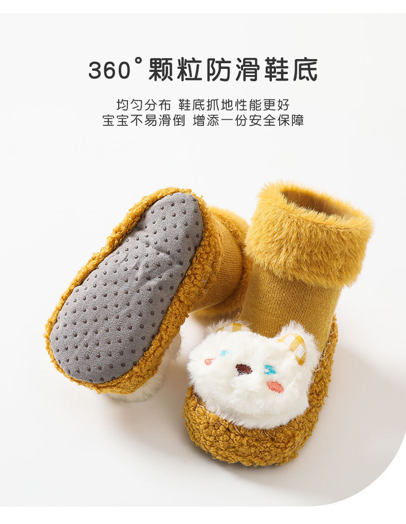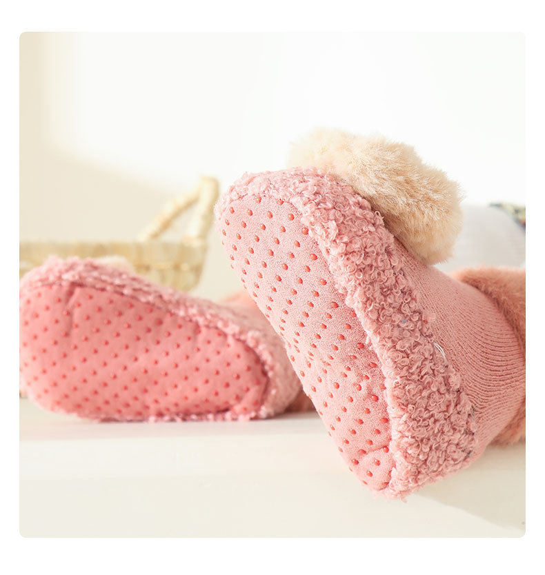 아기 바닥 신발 아기 겨울 두꺼운 테리 바닥 양말 밍크 벨벳 미끄럼 방지 조기 교육 가죽 신발 따뜻한 유아 신발