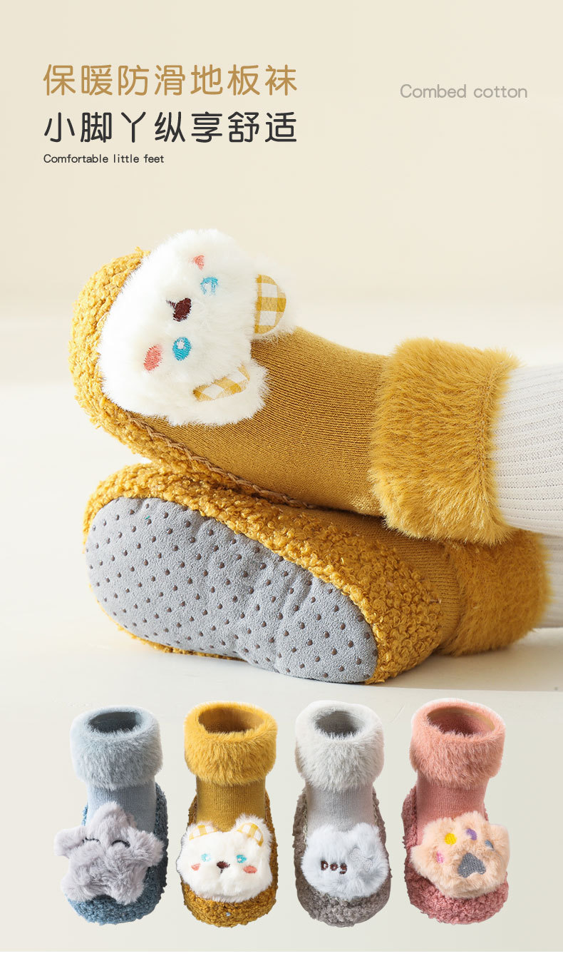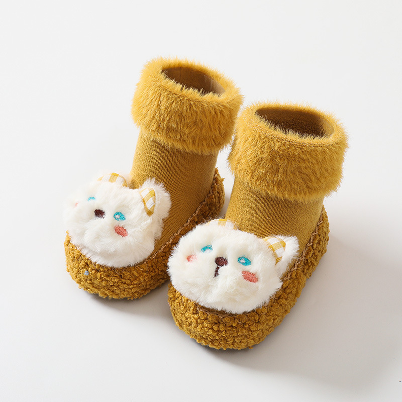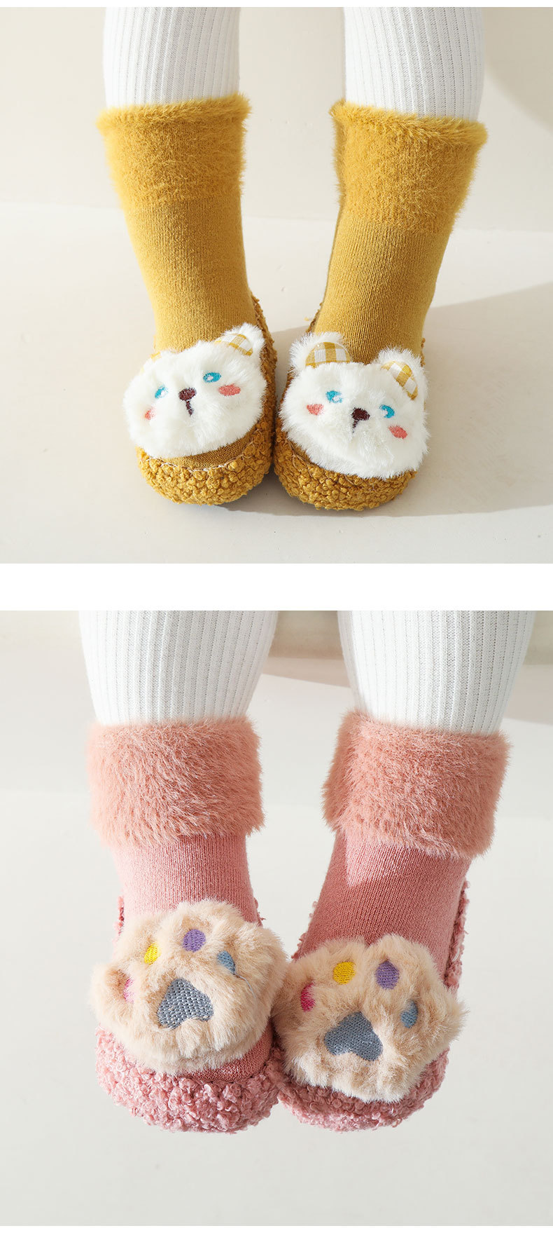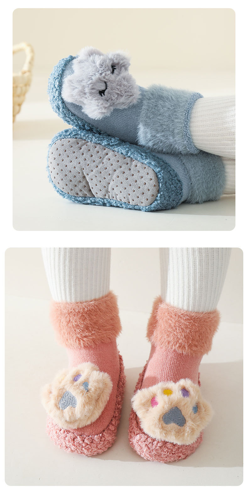 아기 바닥 신발 아기 겨울 두꺼운 테리 바닥 양말 밍크 벨벳 미끄럼 방지 조기 교육 가죽 신발 따뜻한 유아 신발