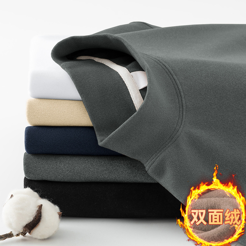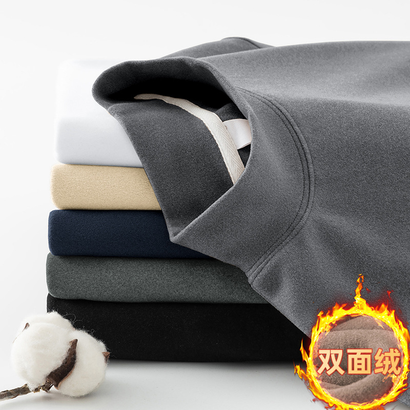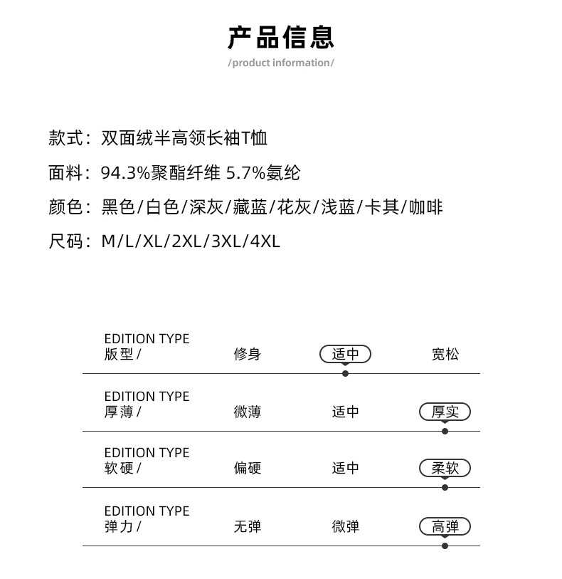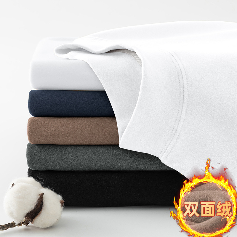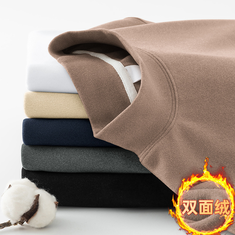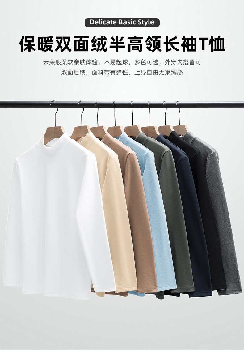 양면 벨벳베이스 셔츠 반 높은 칼라 긴 소매 티셔츠 남자 기모 따뜻한 내부 중간 칼라 작은 셔츠 단색 탑