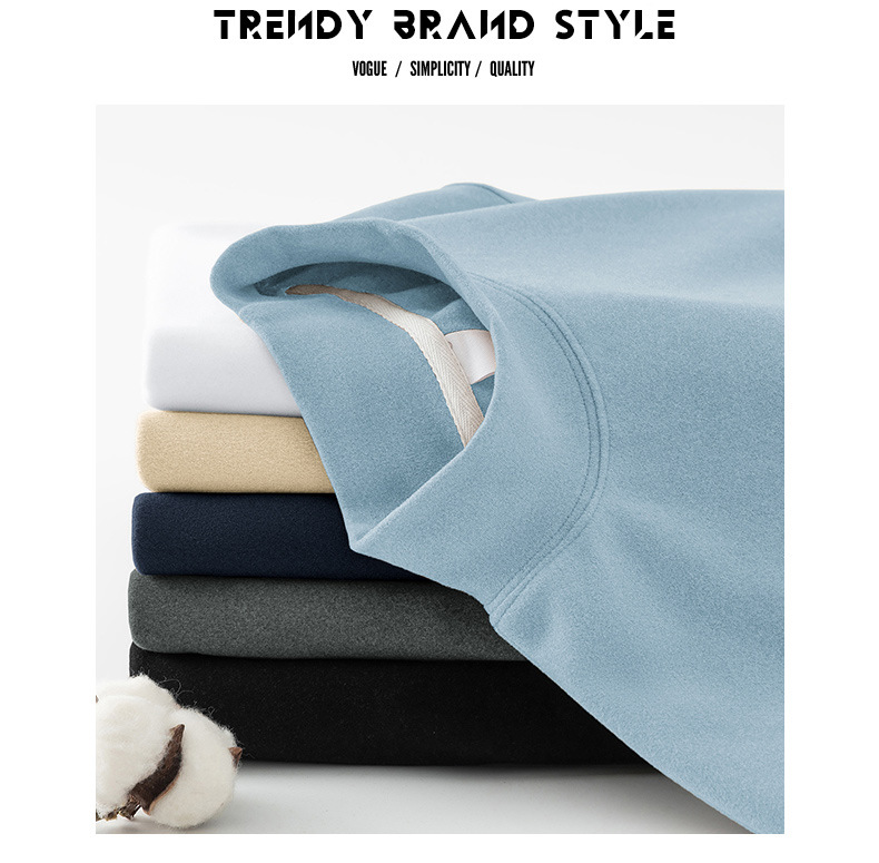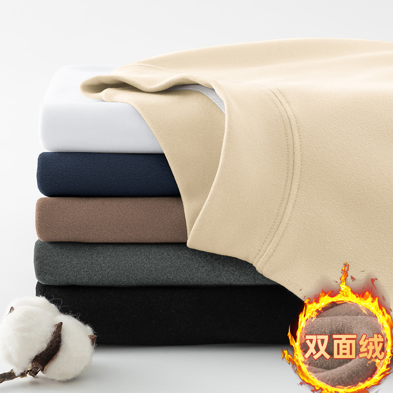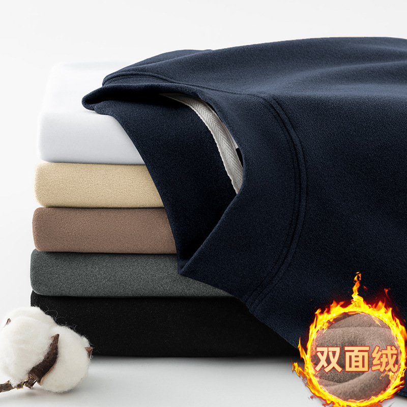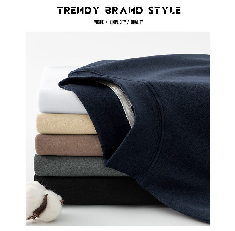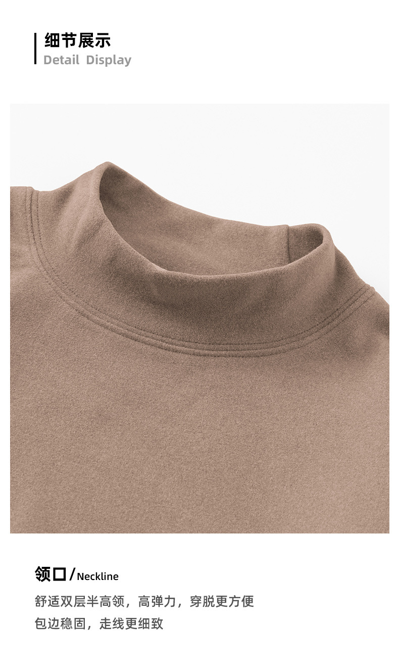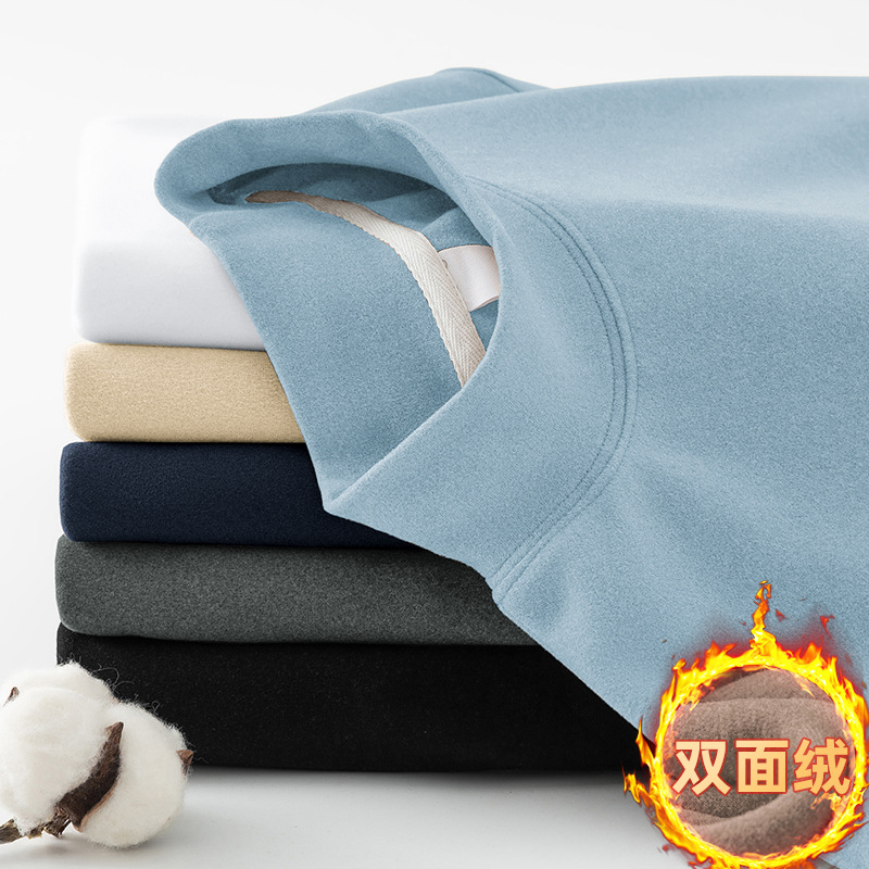 양면 벨벳베이스 셔츠 반 높은 칼라 긴 소매 티셔츠 남자 기모 따뜻한 내부 중간 칼라 작은 셔츠 단색 탑