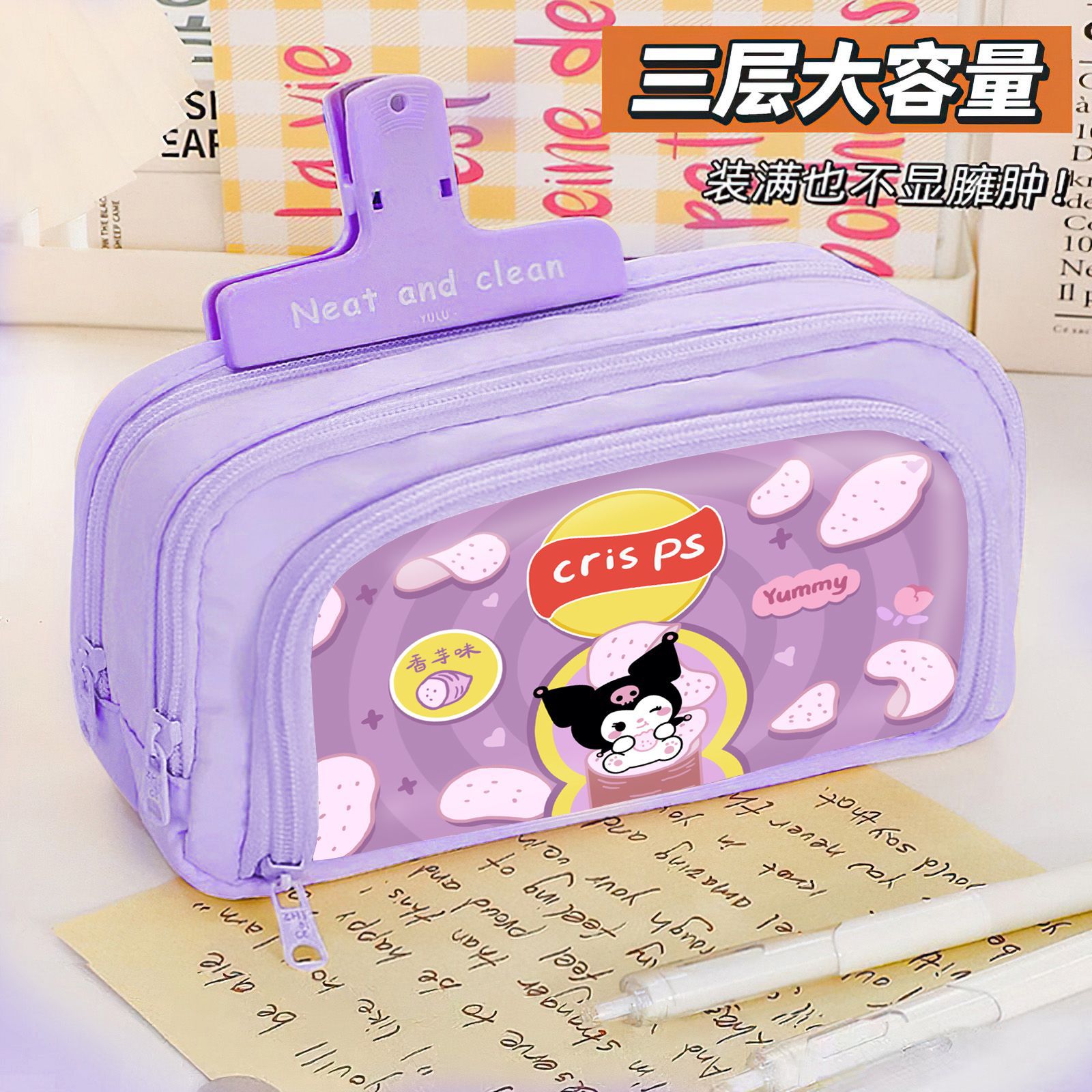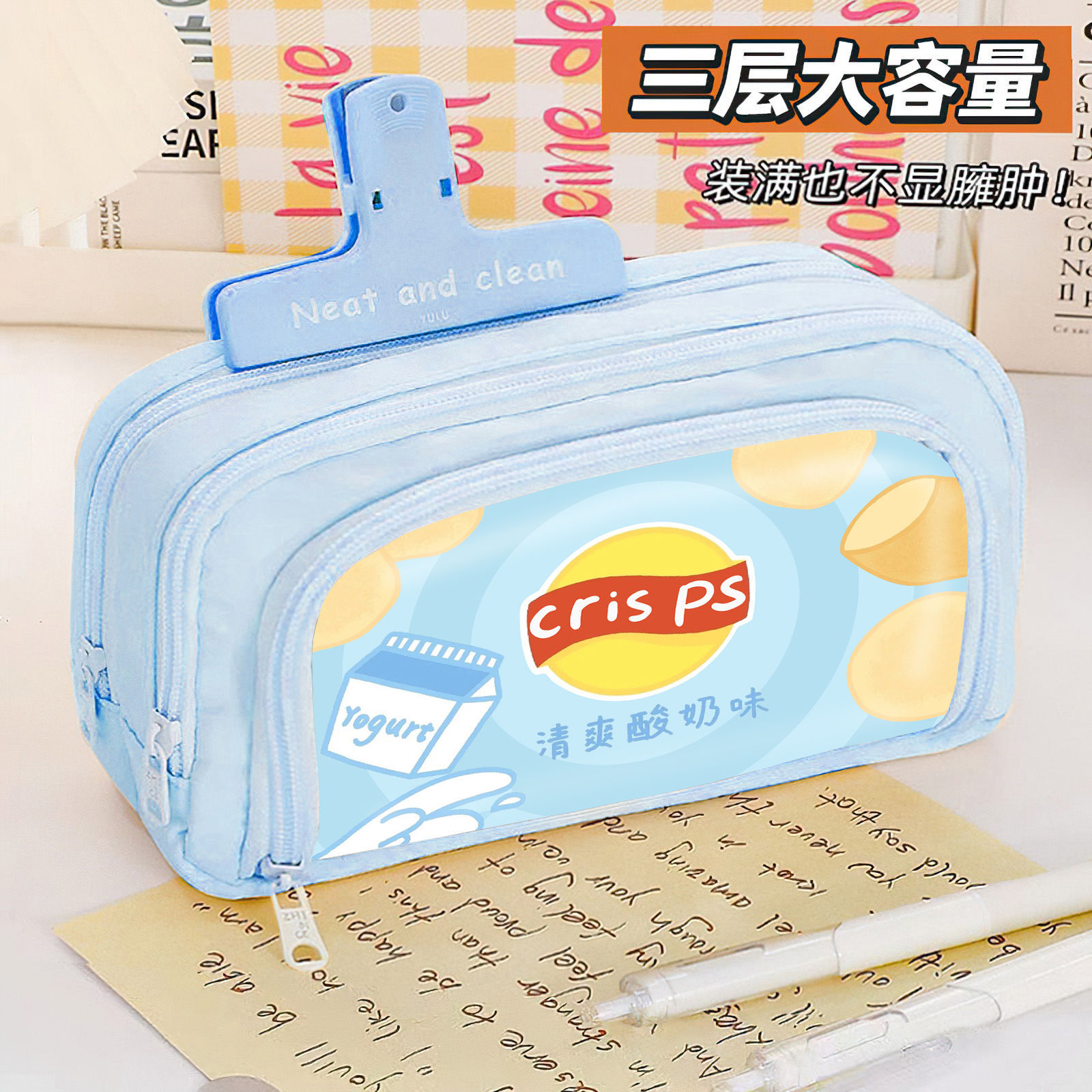 재미있는 연필 케이스 Ins 중학생 창조적 인 감자 칩 대용량 문구 상자 소녀 다기능 틈새 연필 케이스