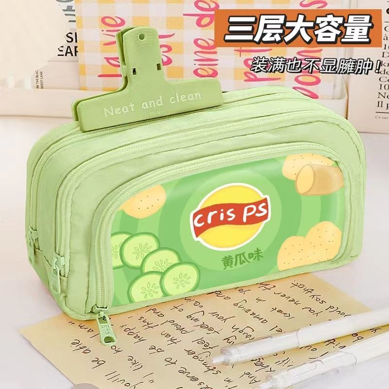 재미있는 연필 케이스 Ins 중학생 창조적 인 감자 칩 대용량 문구 상자 소녀 다기능 틈새 연필 케이스스토어 가기