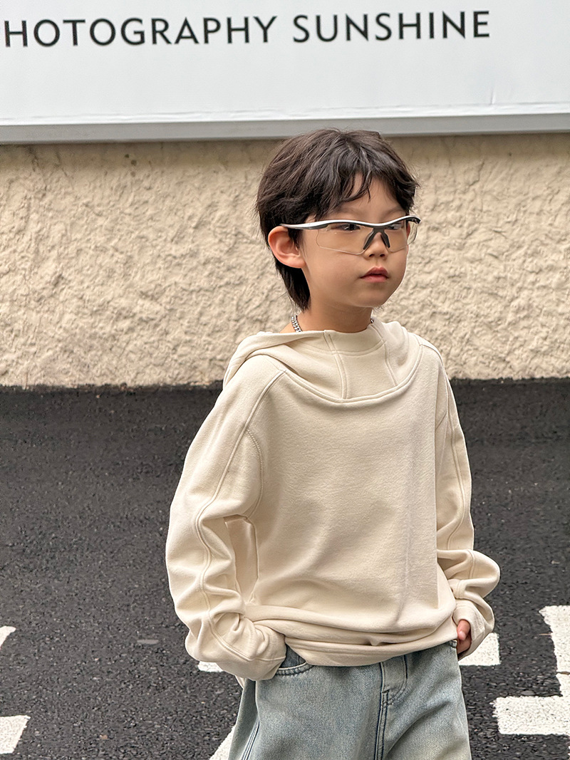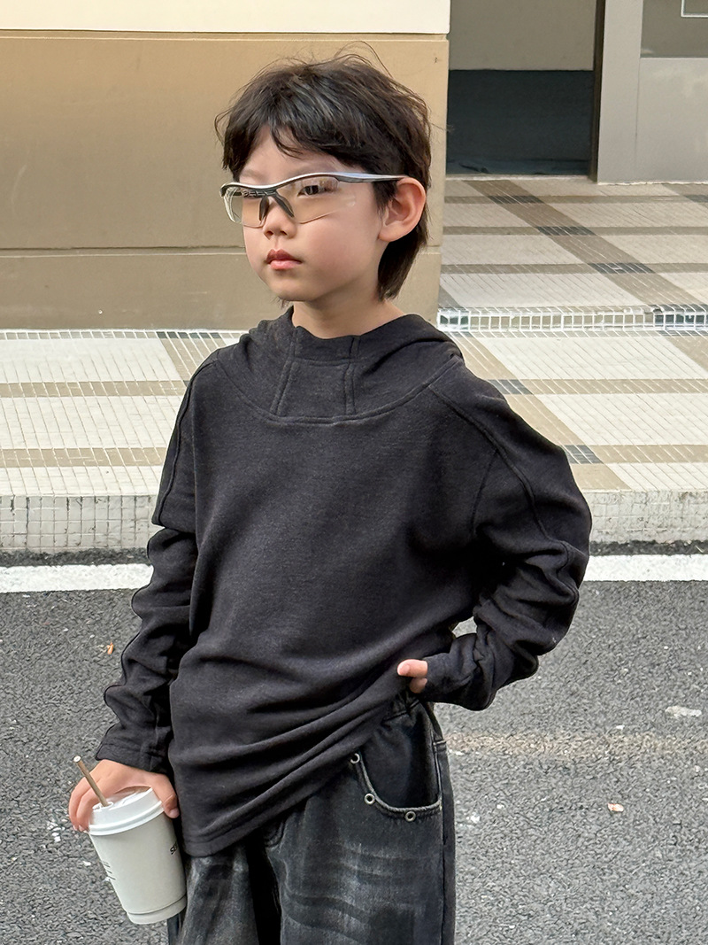 가벼운 럭셔리 아동복 소년 후디 2024 새로운 어린이 서양식 이너 걸스베이스 셔츠 벨벳 티셔츠 긴 소매 트렌디스토어 가기