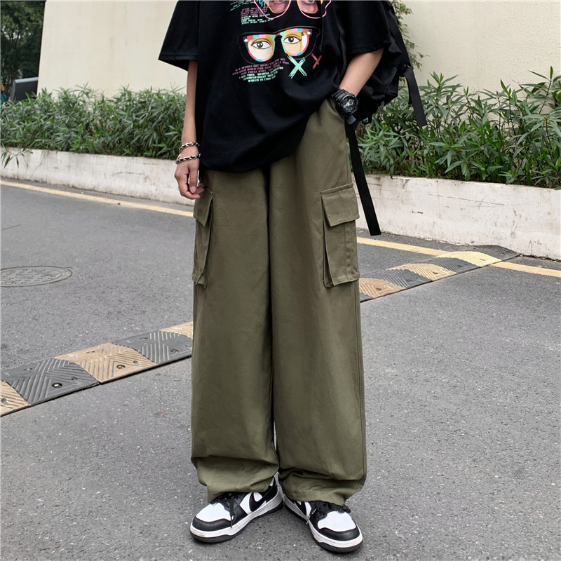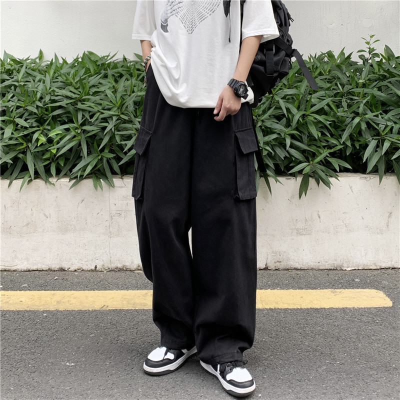 일본식 레트로 바지 남성용 솔리드 컬러 와이드 레그 워시 코튼 오버 트렌디 브랜드 스트레이트 루즈 캐주얼 바지