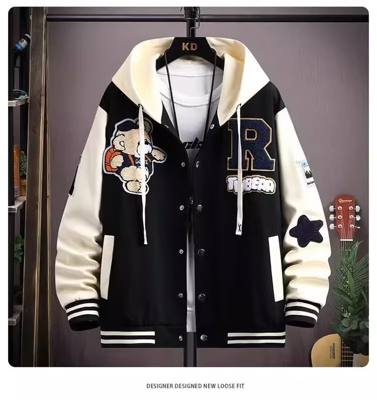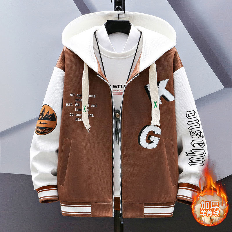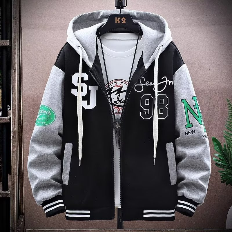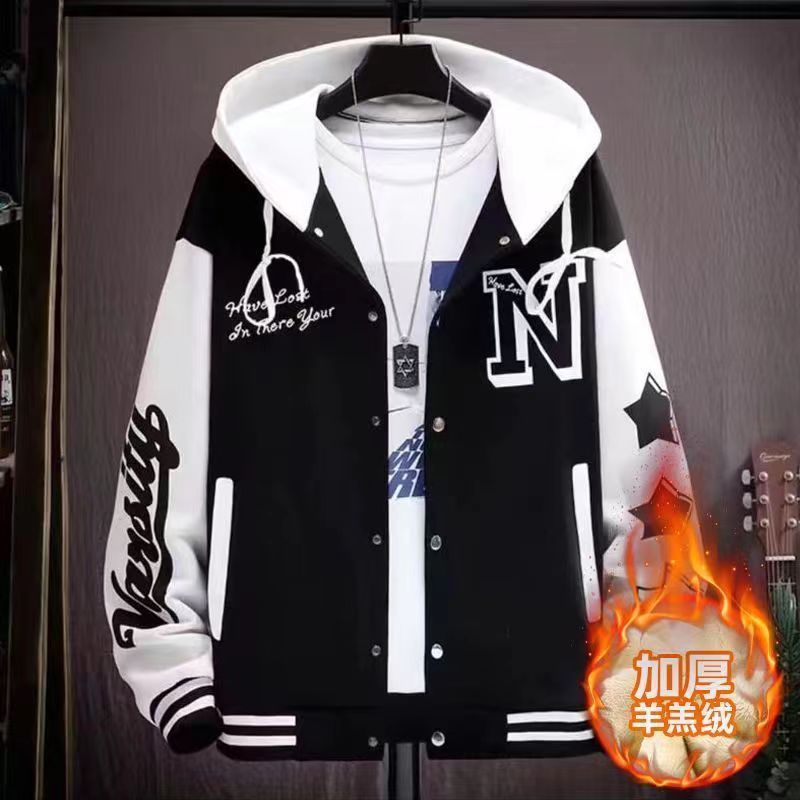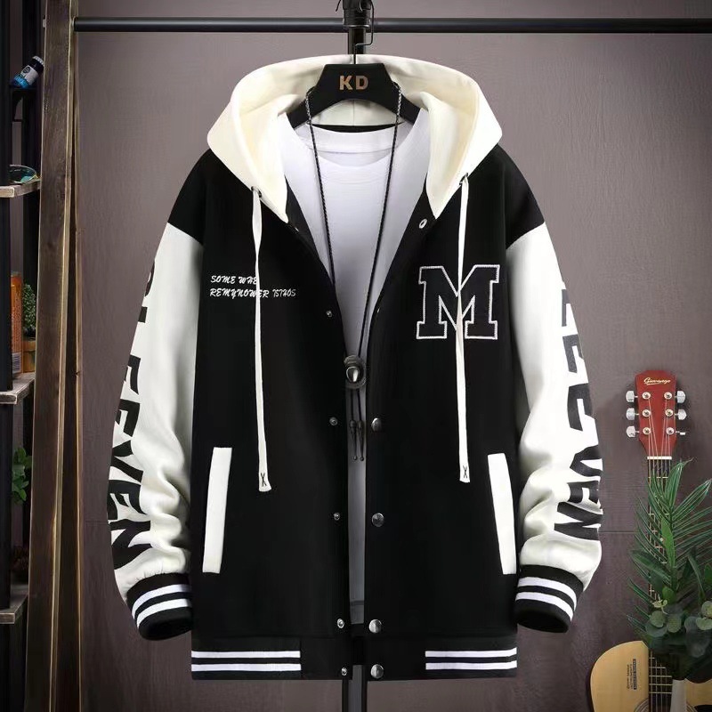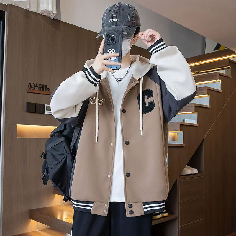 십대 야구 세트 코트 남자 봄과 가을 느슨한 캐주얼 재킷 유행 잘 생긴 소년 후드 기모 스웨트 셔츠스토어 가기