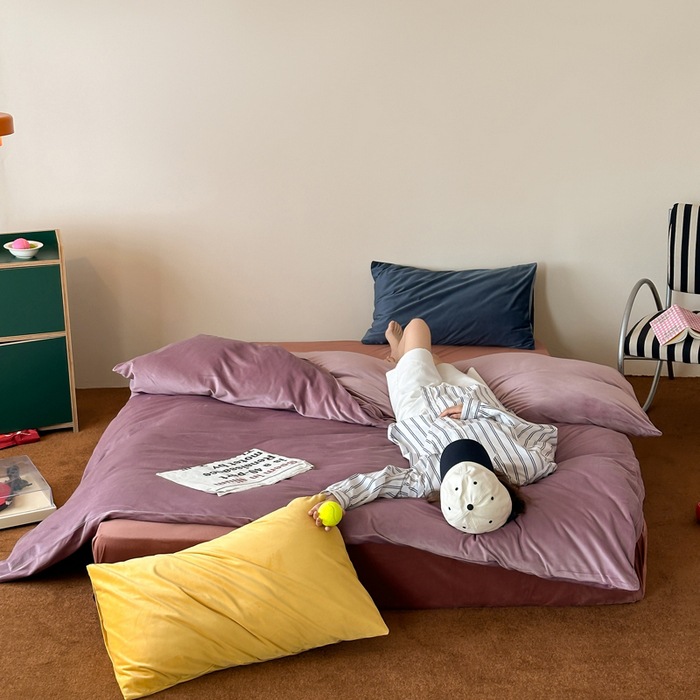 2024 새로운 일본 벨벳 HD 믹스 앤 매치 가을과 겨울 따뜻한 벨벳 4 피스 세트스토어 가기