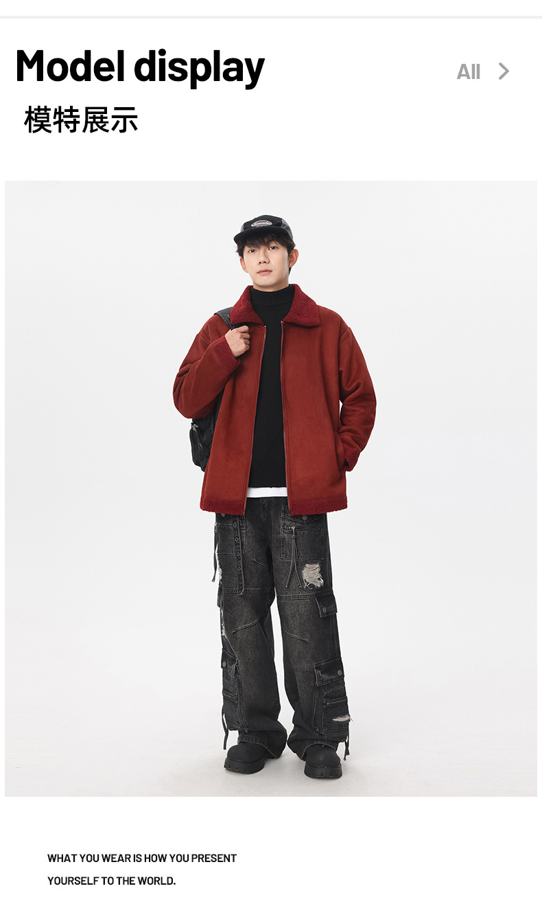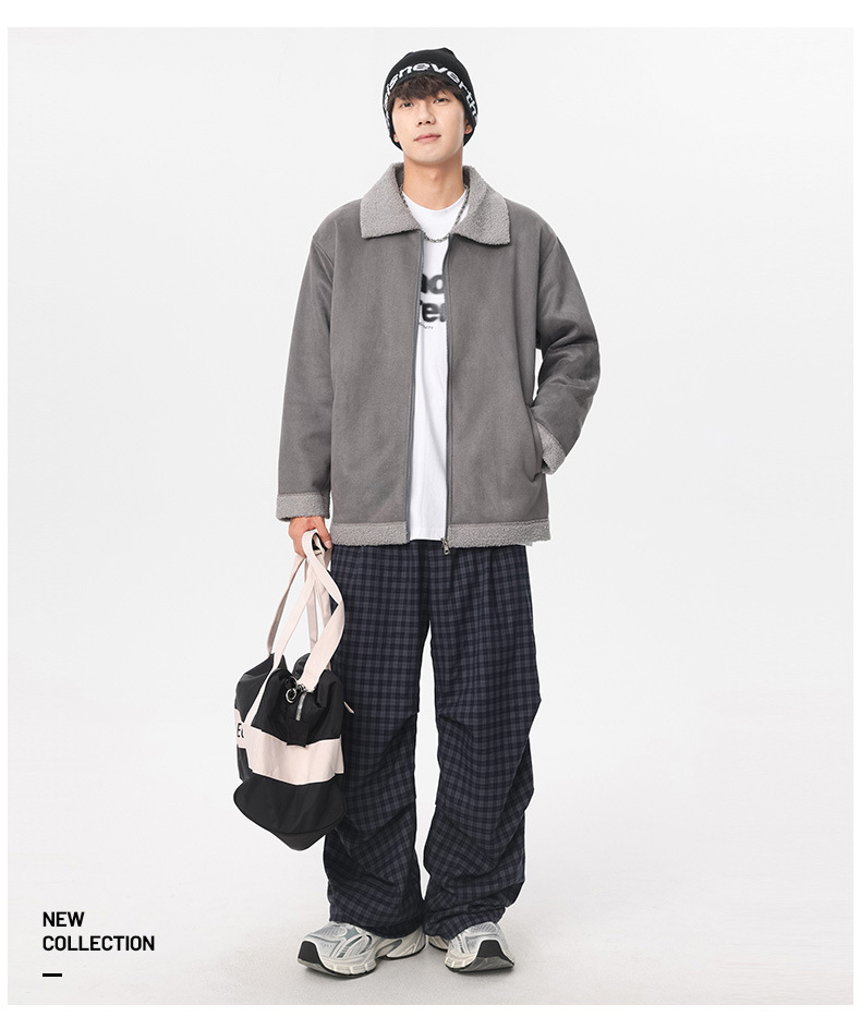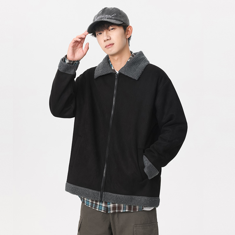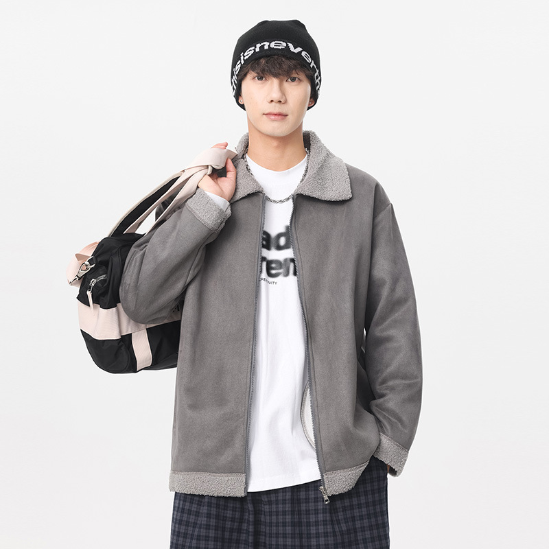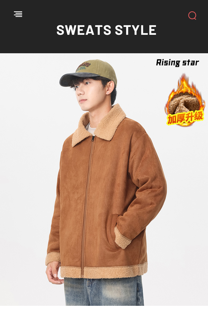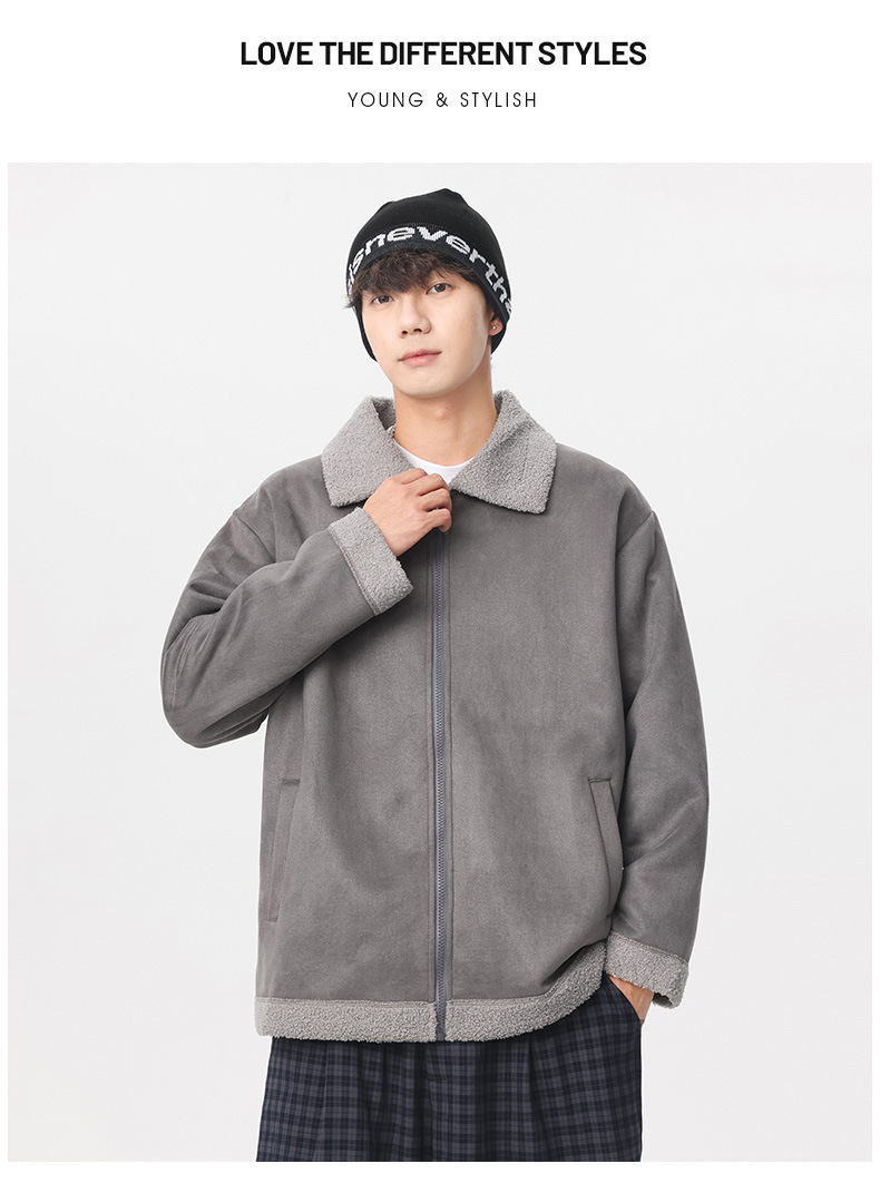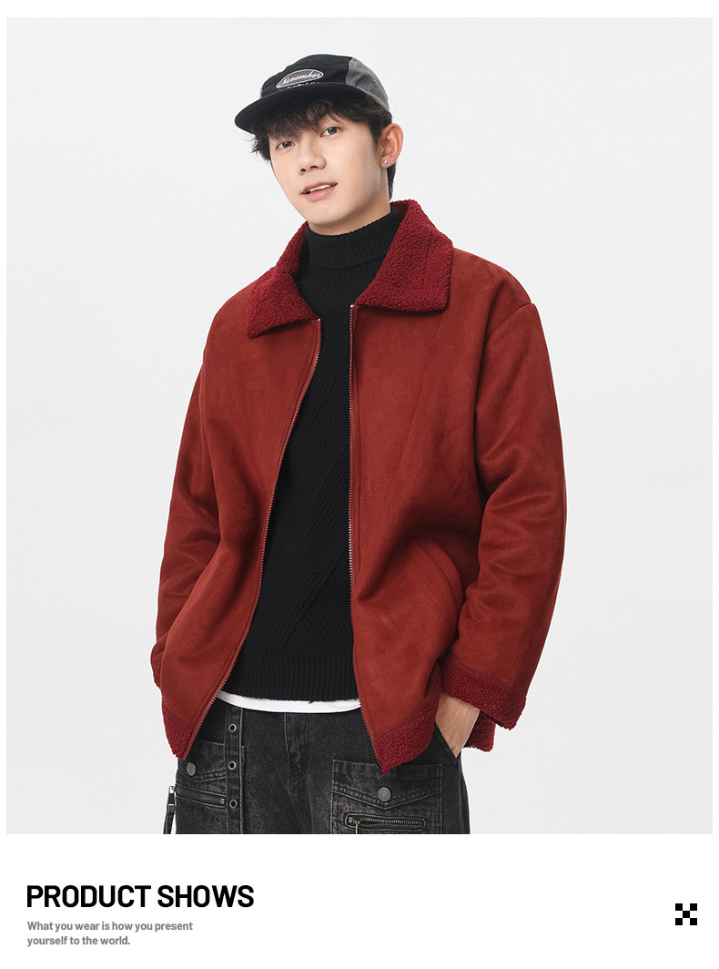 Lapel Lambskin 재킷 남자 겨울 기모 두껍게 2024 새로운 한국 슬림 핏 스웨이드 재킷스토어 가기