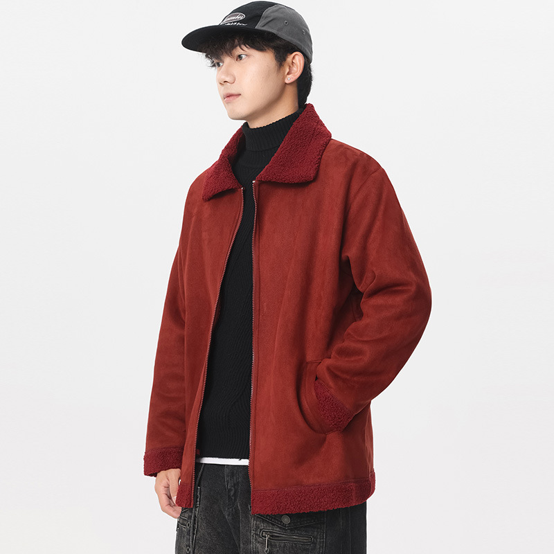 Lapel Lambskin 재킷 남자 겨울 기모 두껍게 2024 새로운 한국 슬림 핏 스웨이드 재킷