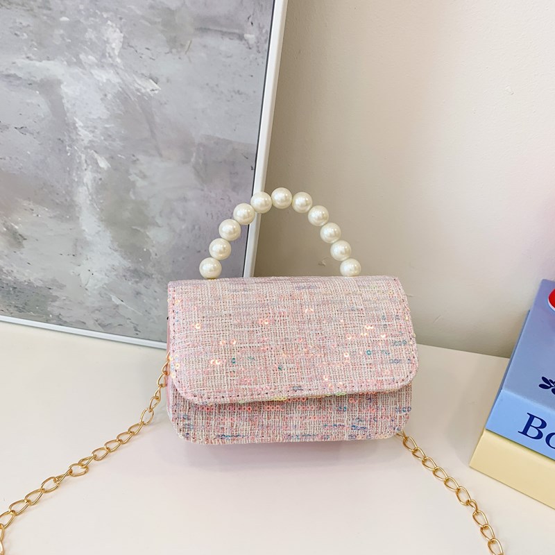 새로운 작은 향기로운 스타일 진주 휴대용 어린이 가방 유치원 어린이 스팽글 메신저 가방 알몸 가방 제조 업체 도매