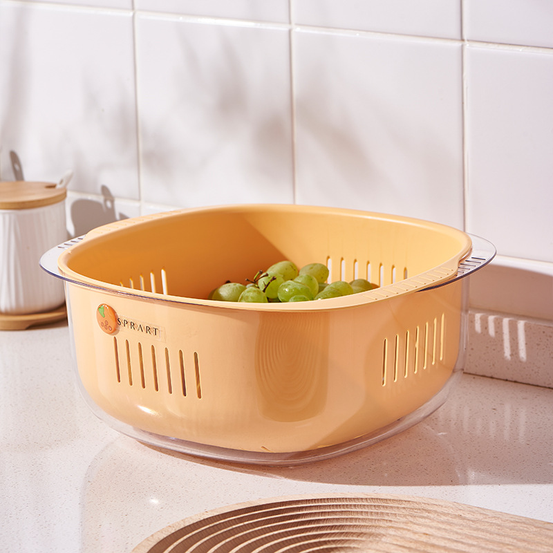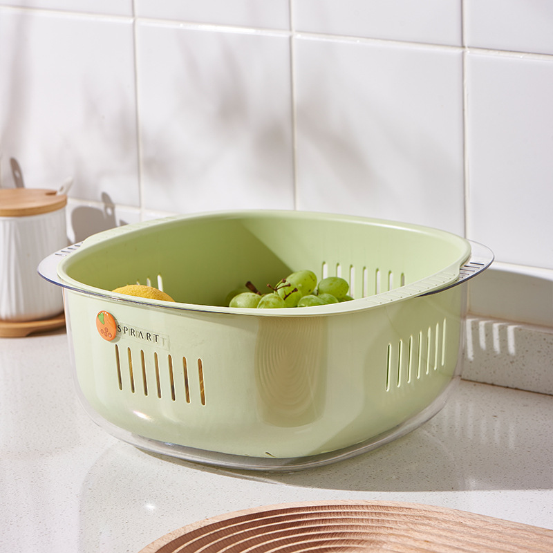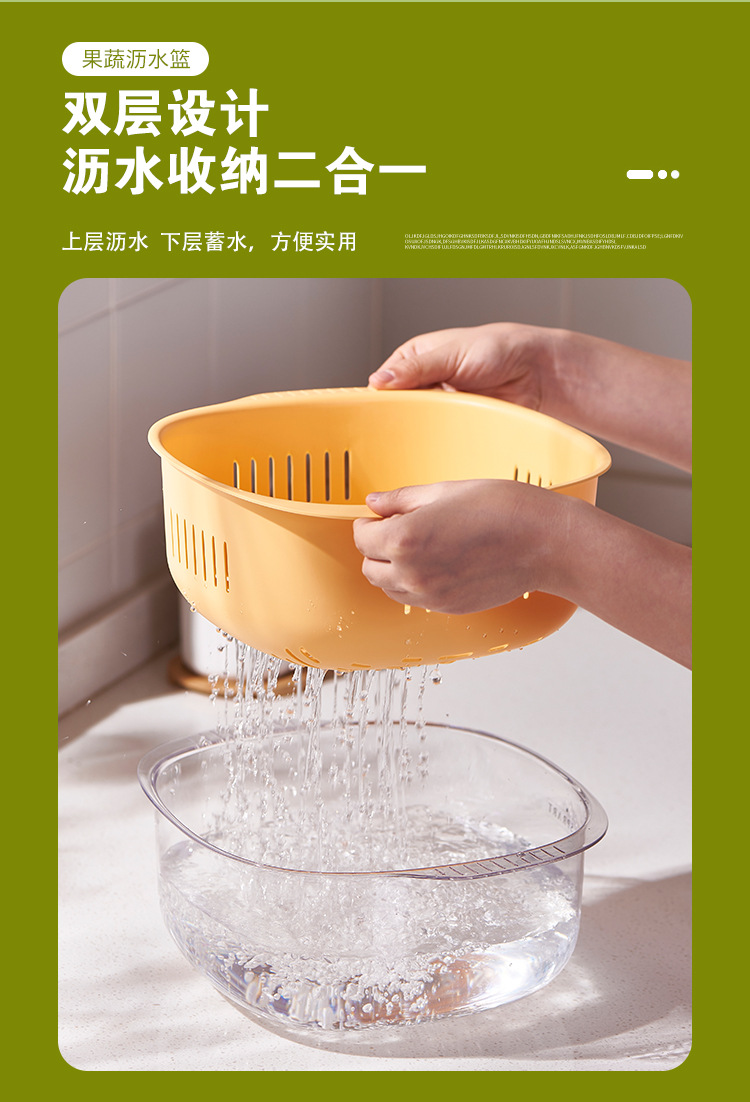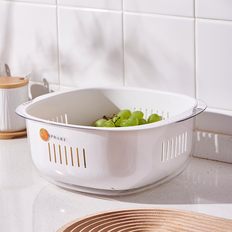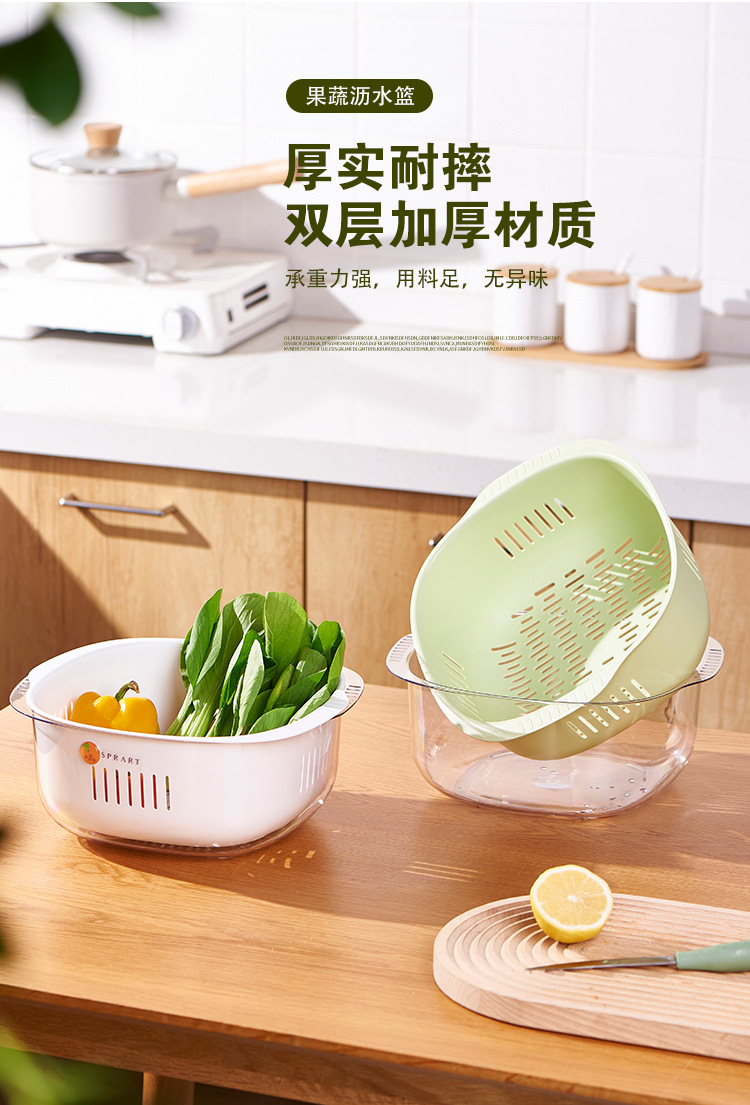 매달린 더블 레이어 야채 세척 분지 주방 두꺼운 Amoy 야채 세척 바구니 세척 과일 및 야채 배수 바구니