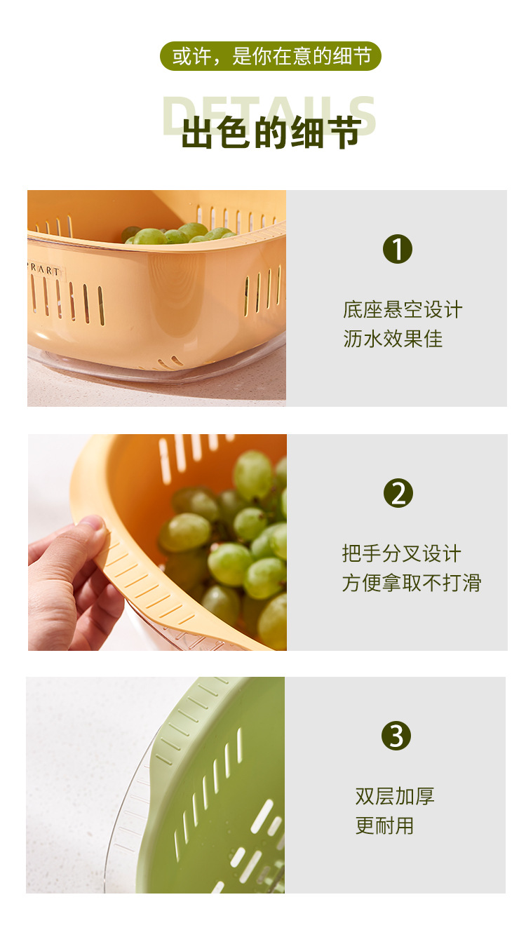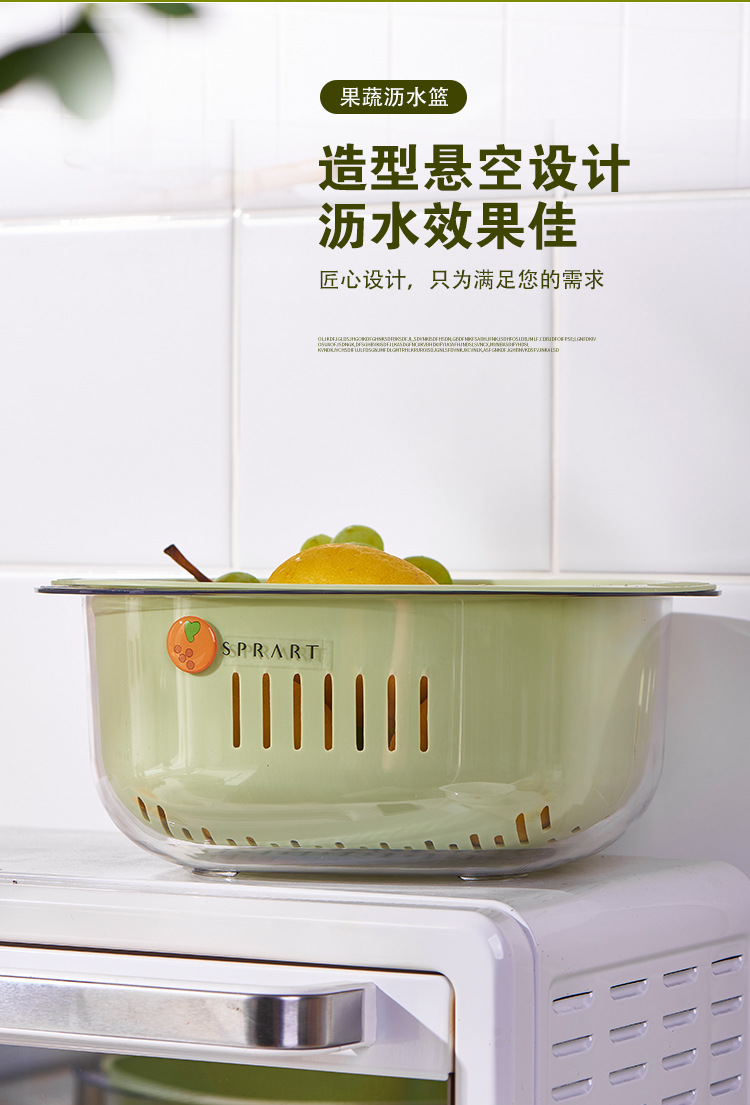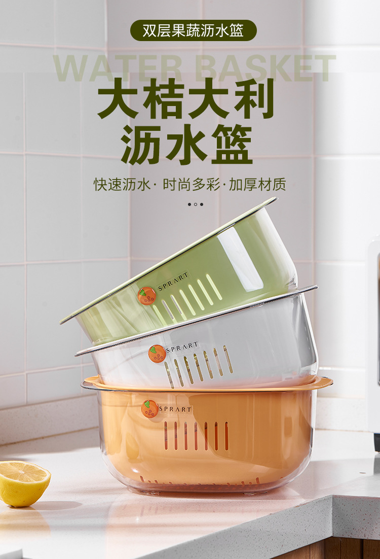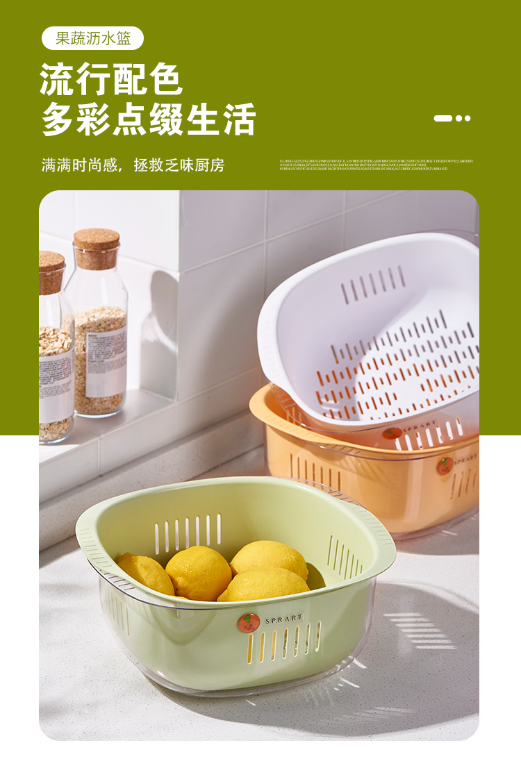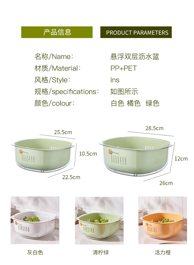 매달린 더블 레이어 야채 세척 분지 주방 두꺼운 Amoy 야채 세척 바구니 세척 과일 및 야채 배수 바구니