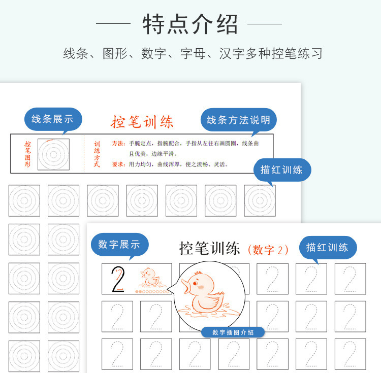 유치원 제어 펜 훈련 추적 레드 스트로크 디지털 영어스토어 가기