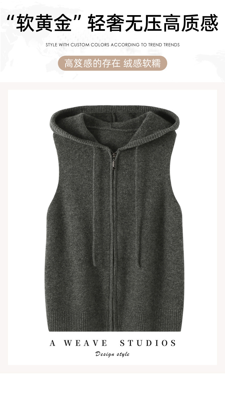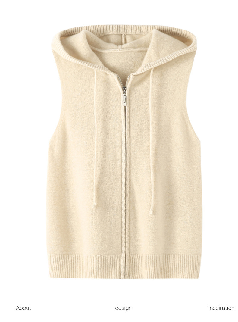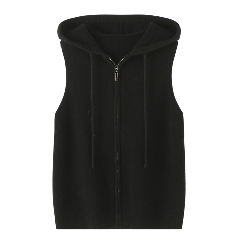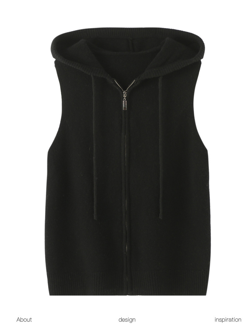 게으른 스타일 지퍼 후드 조끼 여성 100 울 느슨한 민소매 허리 코트 캐주얼 스웨터 외부 탑 카디건