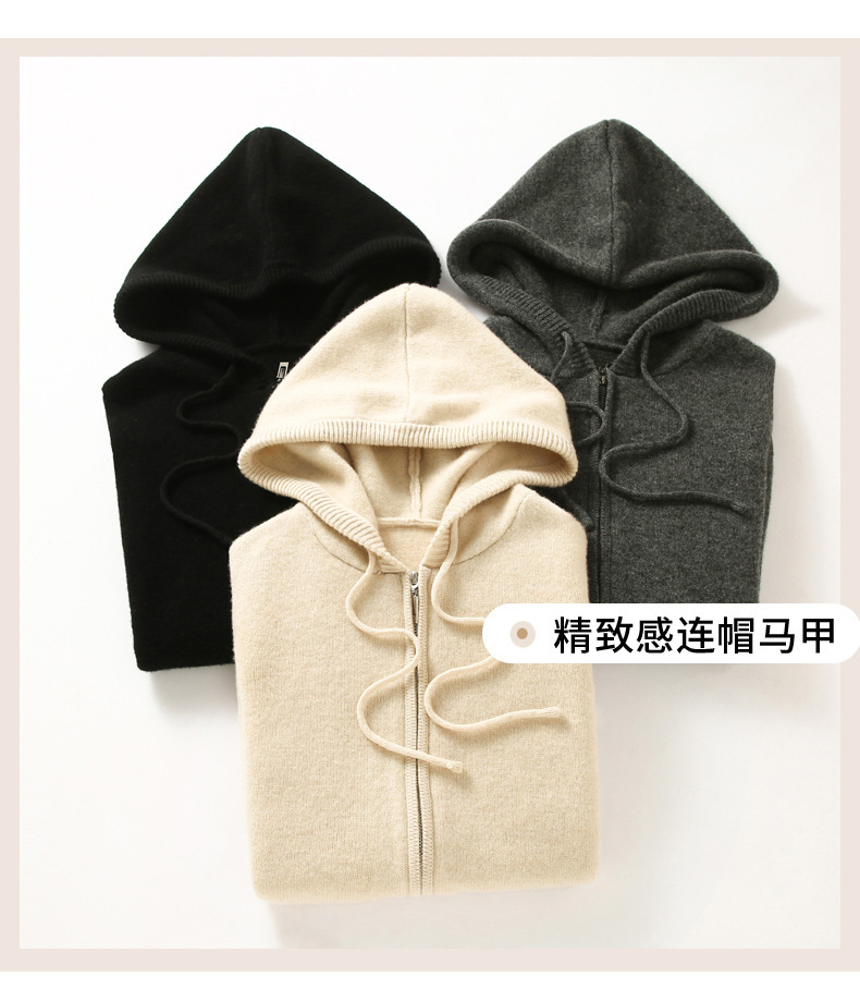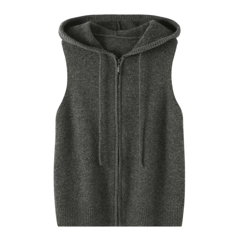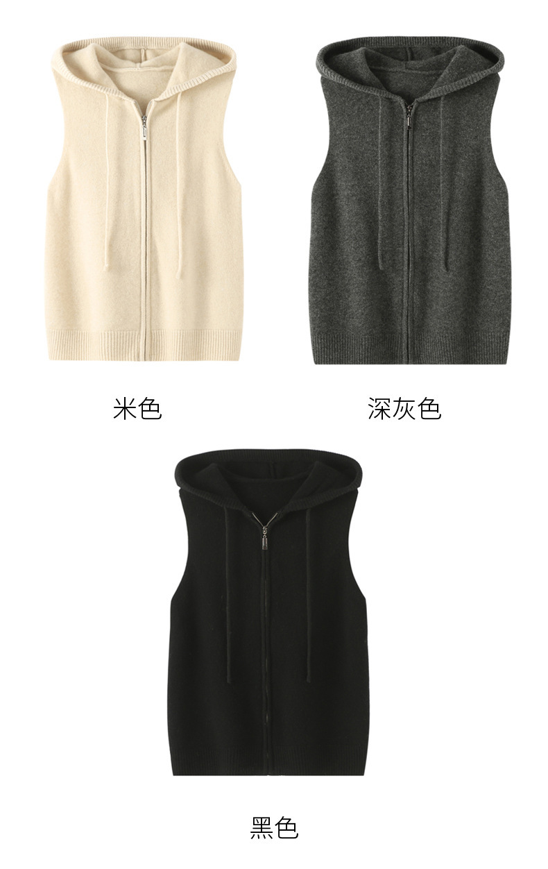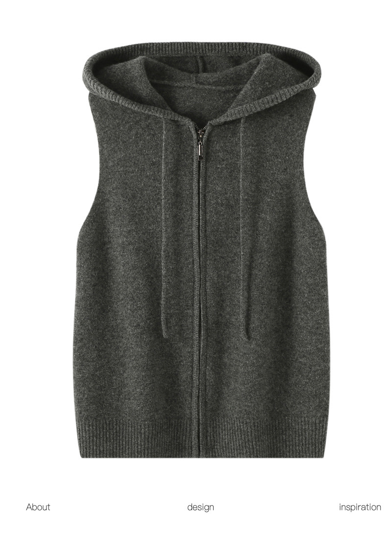 게으른 스타일 지퍼 후드 조끼 여성 100 울 느슨한 민소매 허리 코트 캐주얼 스웨터 외부 탑 카디건