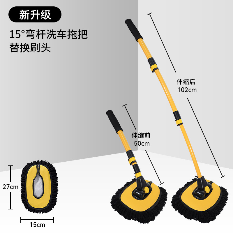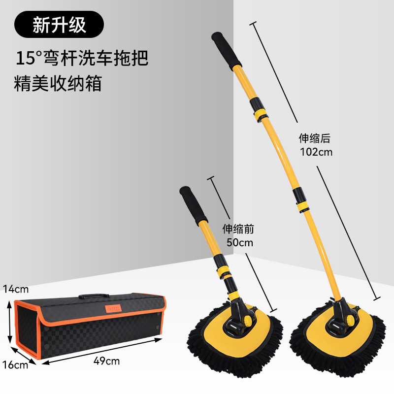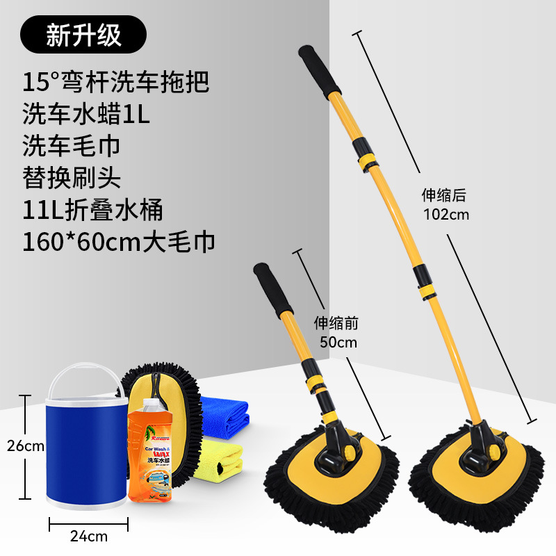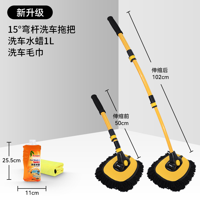 • 노란색 [3단 텔레스코픽 모델 + 1L 워터왁스 + 타월] [15°곡선 막대 + 셔닐 브러시 헤드 + 합금 막대 손잡이]