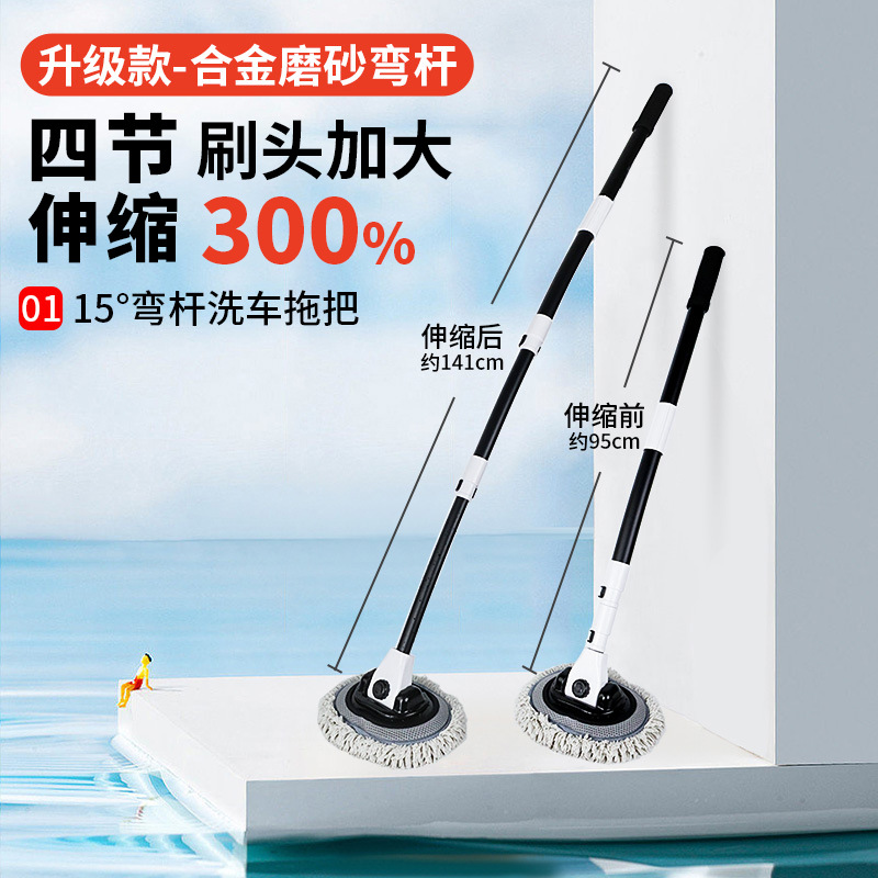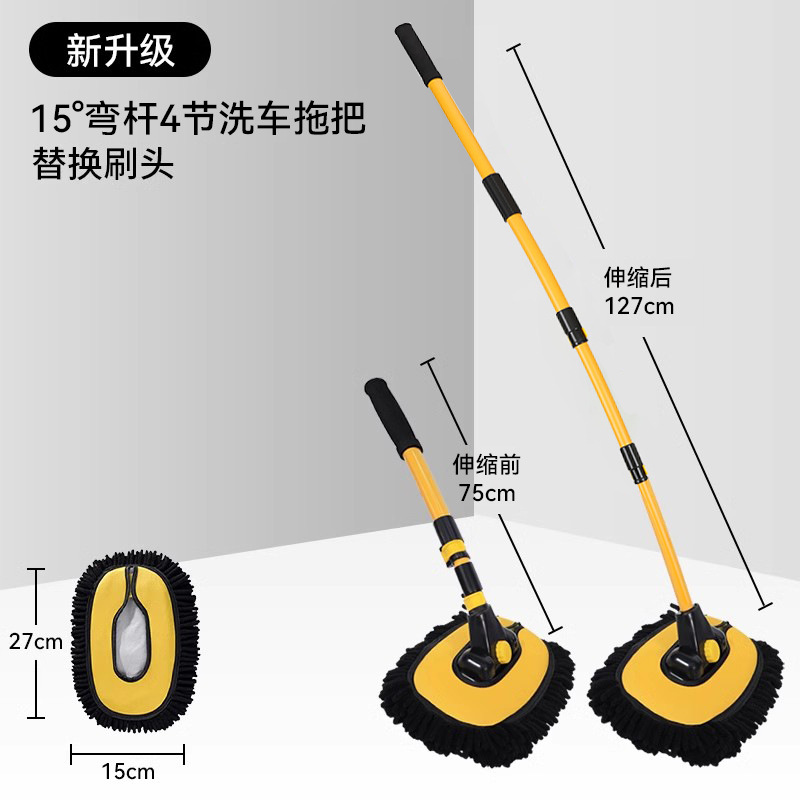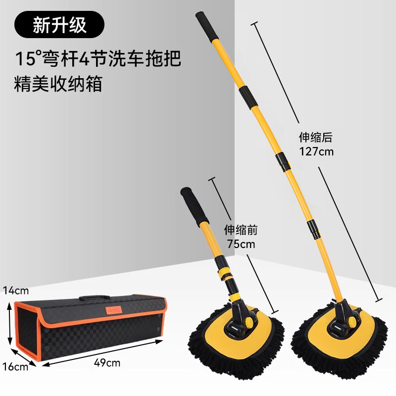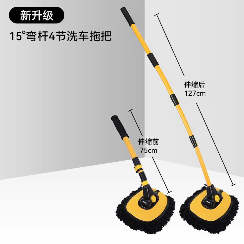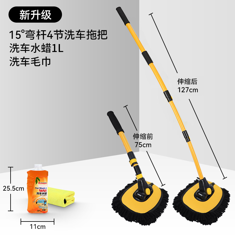 • 노란색 [4단 텔레스코픽 탈부착 모델 + 워터왁스 1L + 타월] [15°곡선 막대 + 셔닐 브러시 헤드 + 합금 막대 손잡이]
