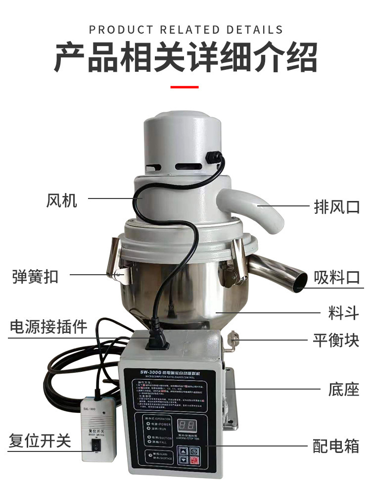 • 고온 튜브가 장착된 300G 흡입 기계(전기 눈 모델)