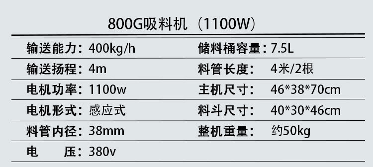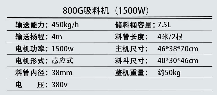 • 800G 흡입기 1.5KW (7.5L 호퍼)