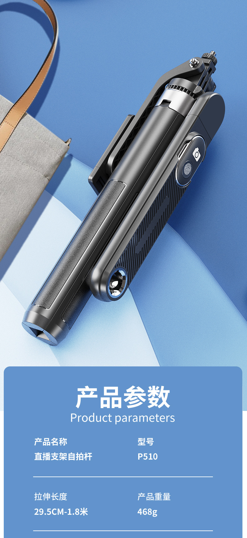 新款P510-P515自拍杆 蓝牙自拍器旅游拍照神器防抖可伸缩手机支架