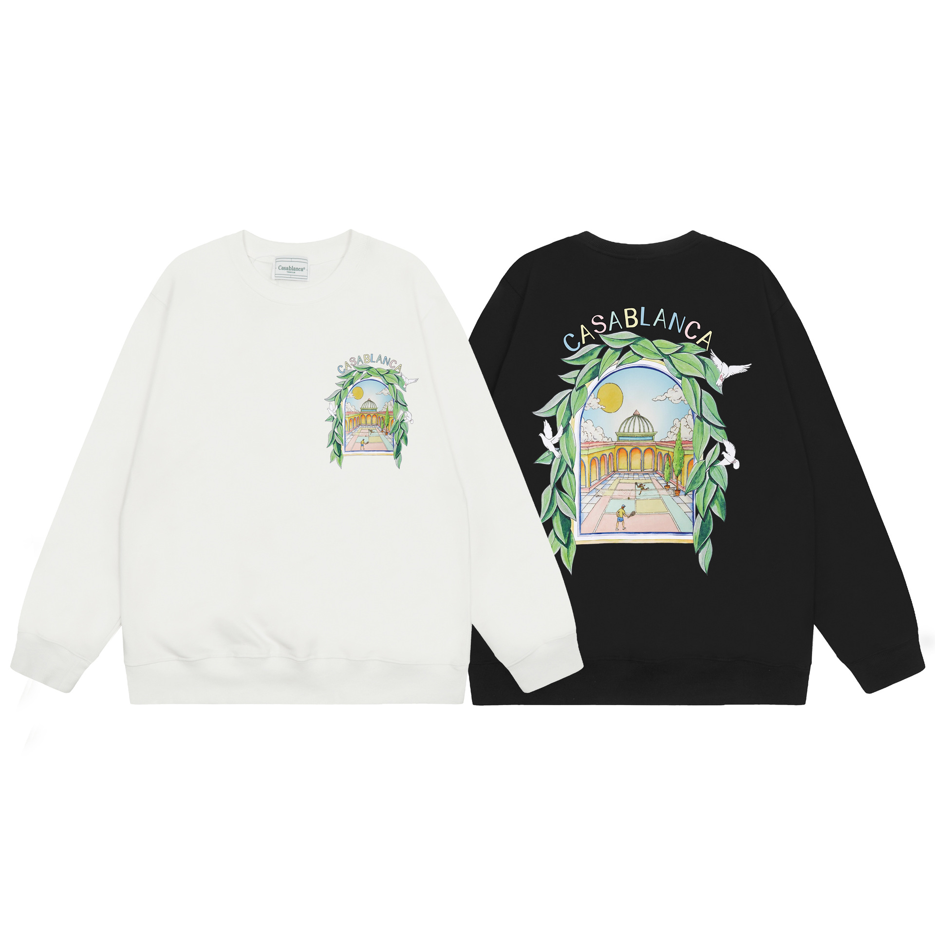 라운드넥 헤비웨이트 루즈핏 360g 테리 스웨트셔츠, 남녀공용 한정판 레인보우 크리에이티브 프린트스토어 가기
