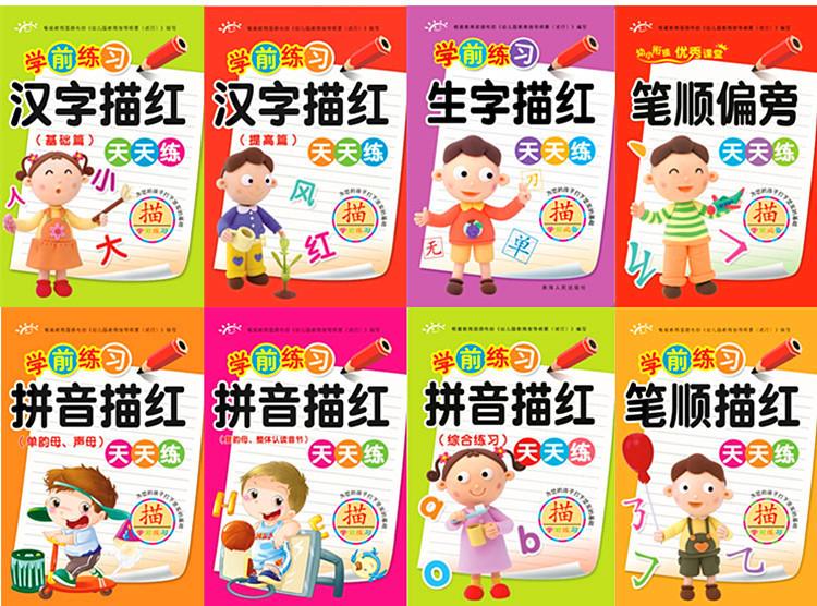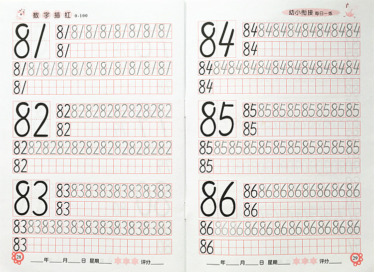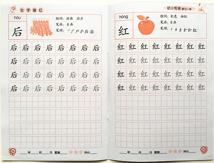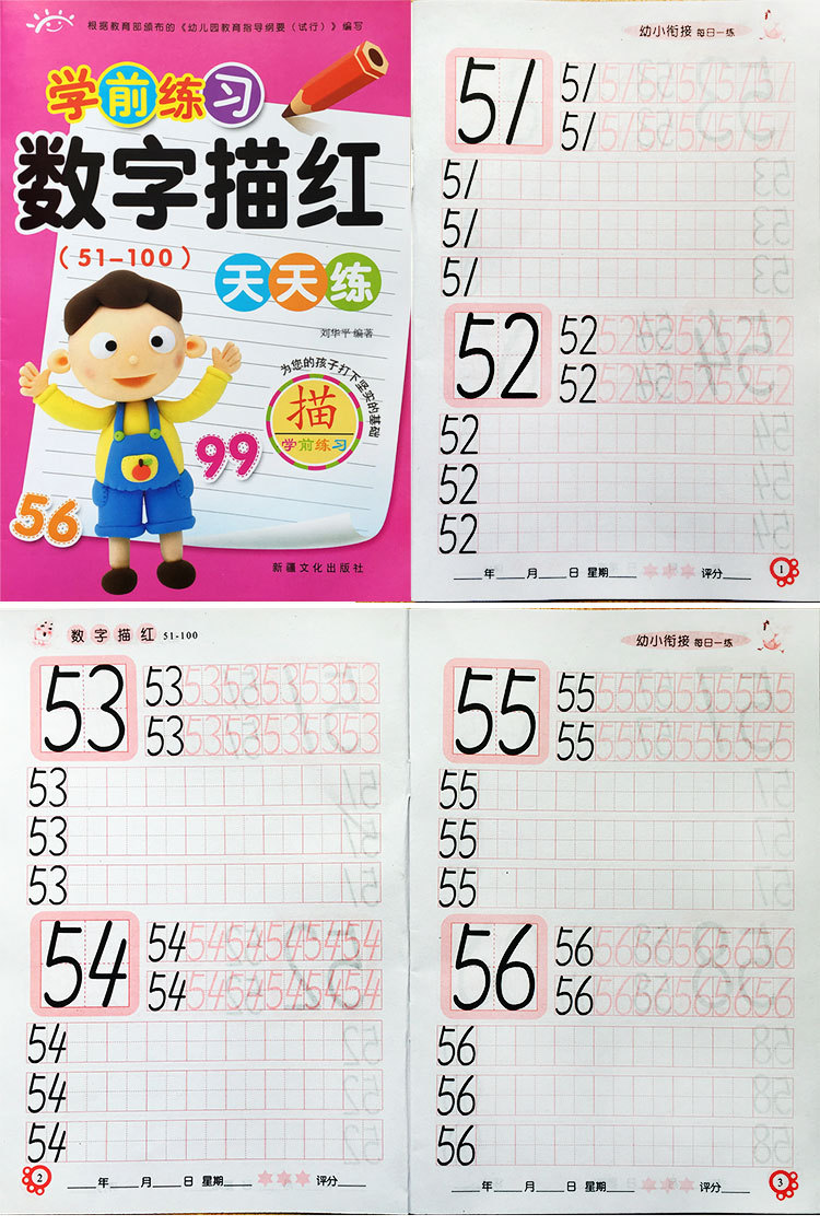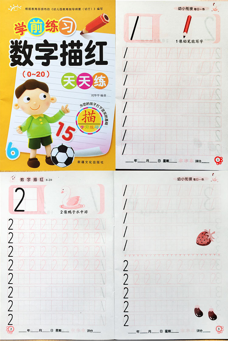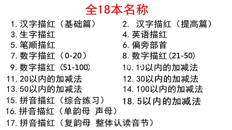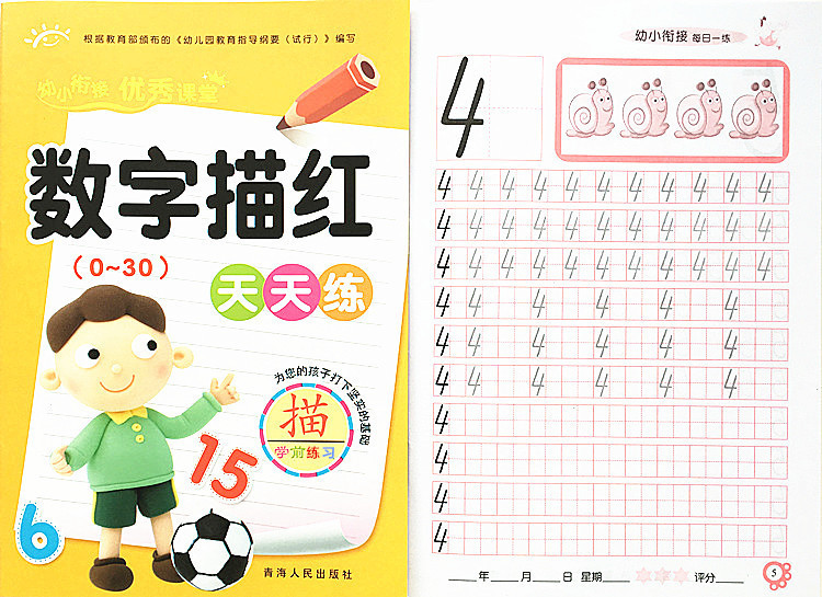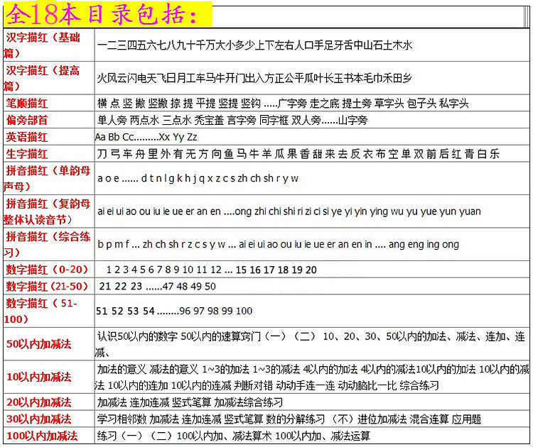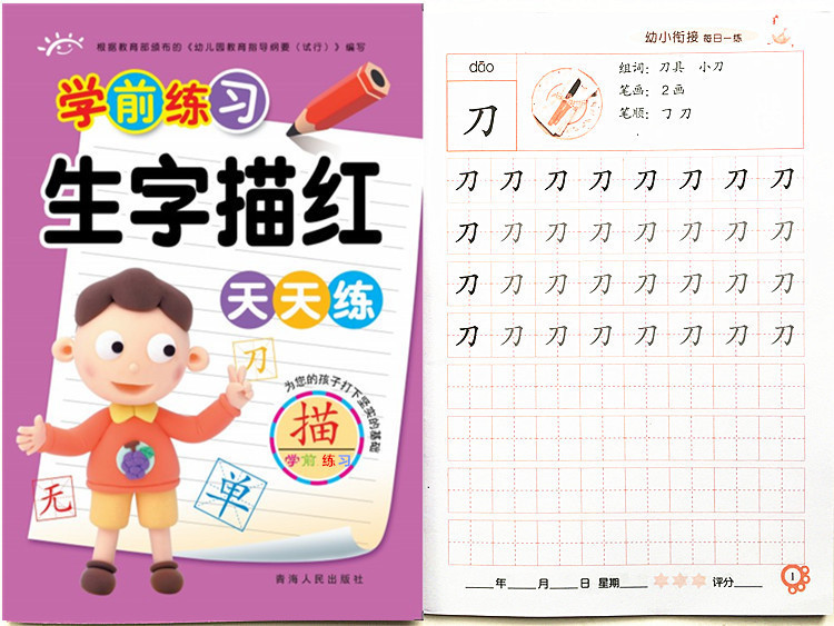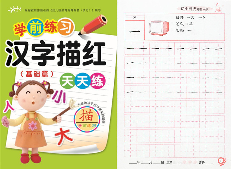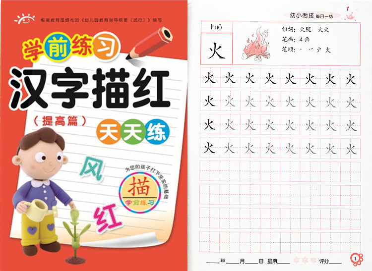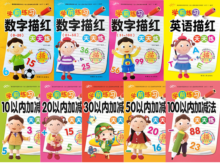 취학 전 교육 전에 매일 빨간색을 추적하는 한자를 연습하고 100 이내에 적색을 추적하는 병음색을 더하고 뺍니다.