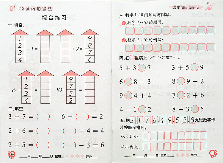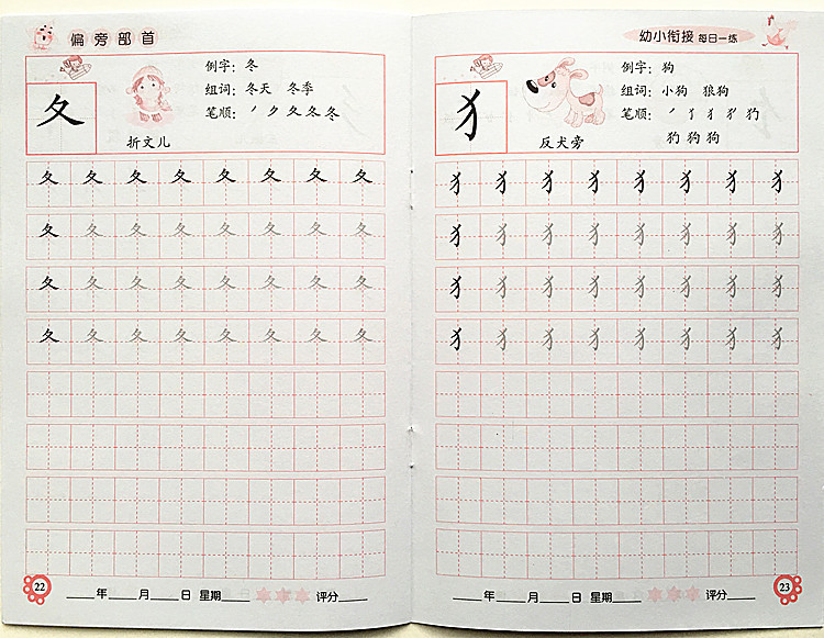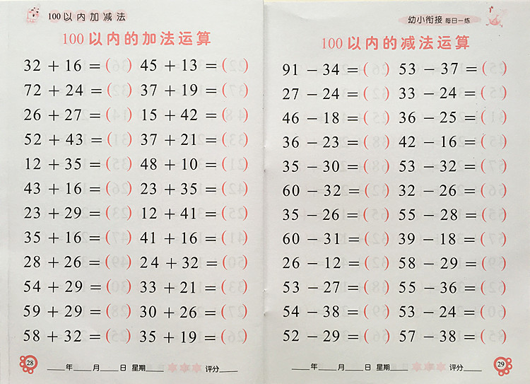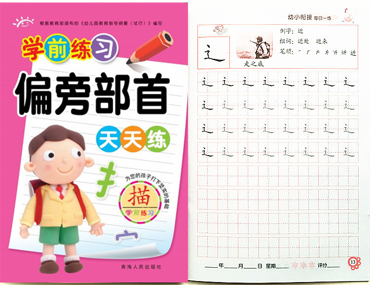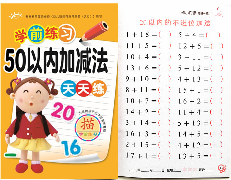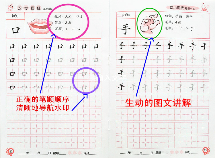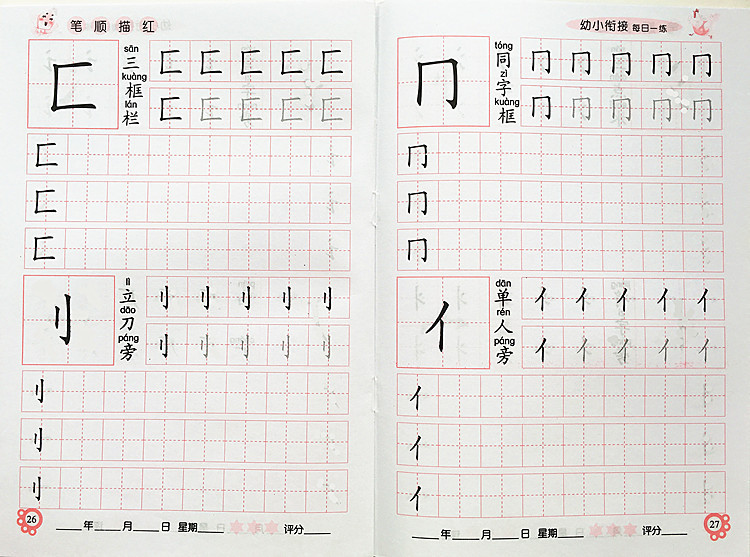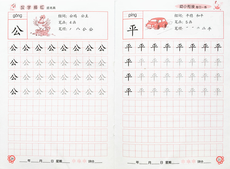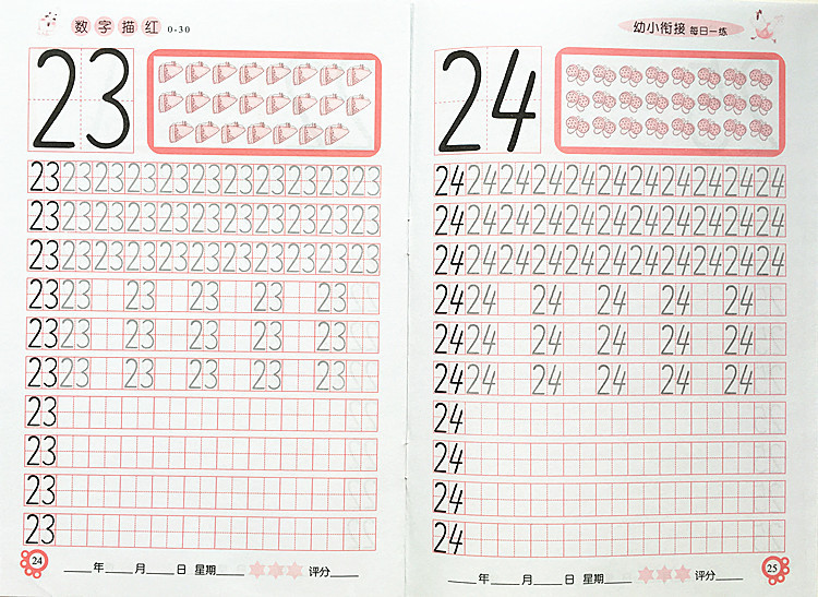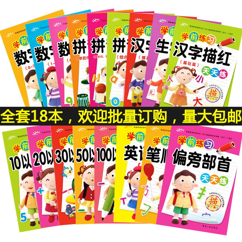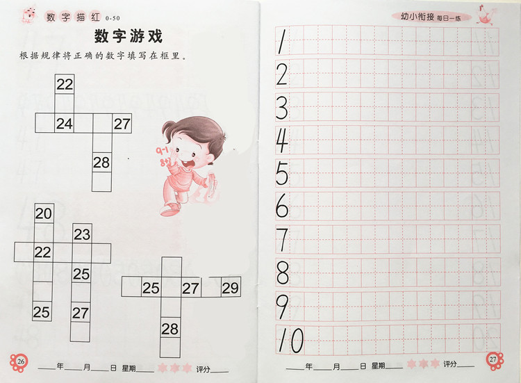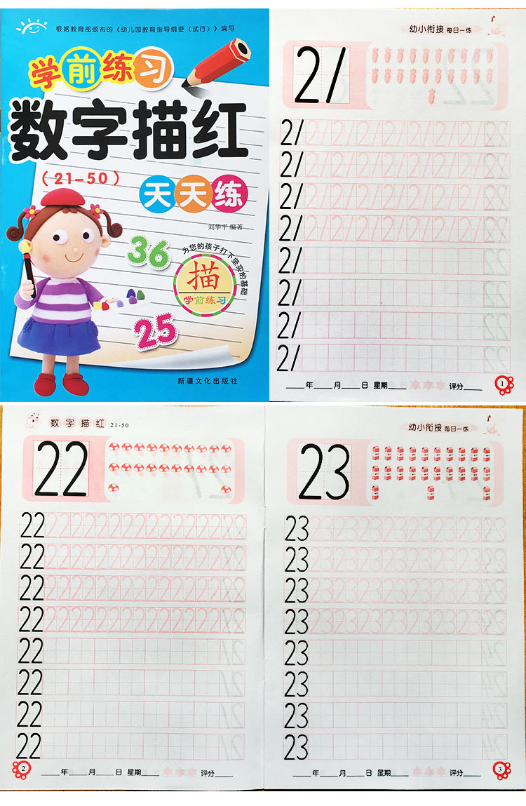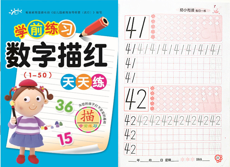 취학 전 교육 전에 매일 빨간색을 추적하는 한자를 연습하고 100 이내에 적색을 추적하는 병음색을 더하고 뺍니다.