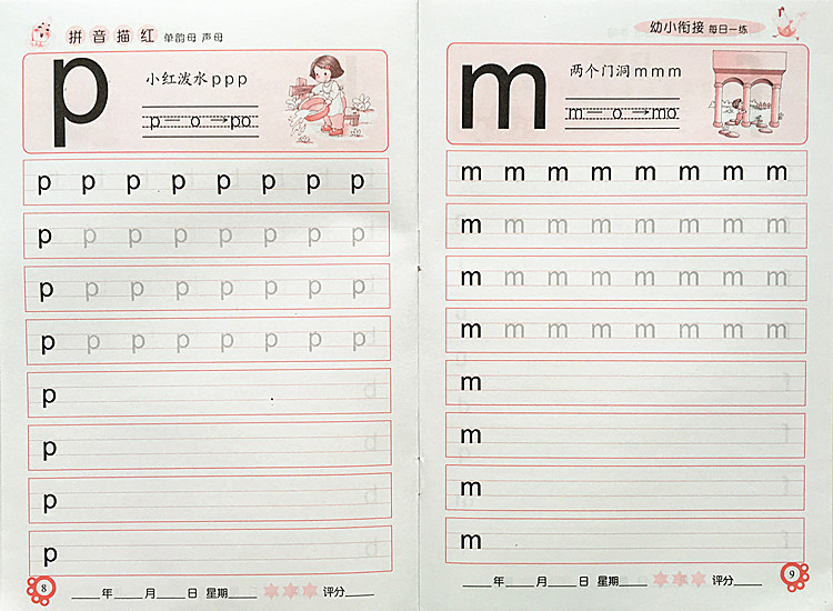취학 전 교육 전에 매일 빨간색을 추적하는 한자를 연습하고 100 이내에 적색을 추적하는 병음색을 더하고 뺍니다.스토어 가기