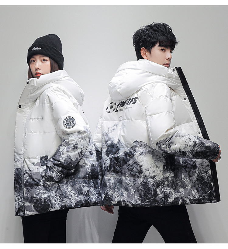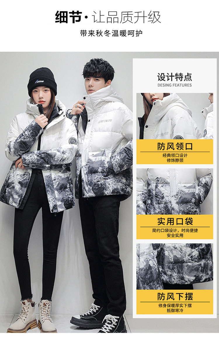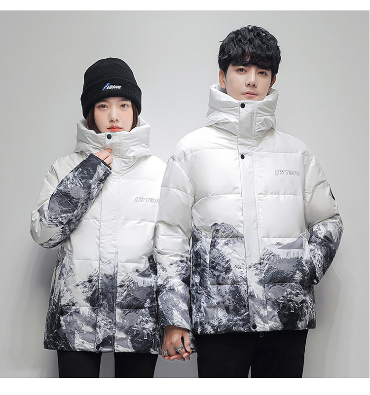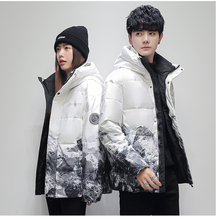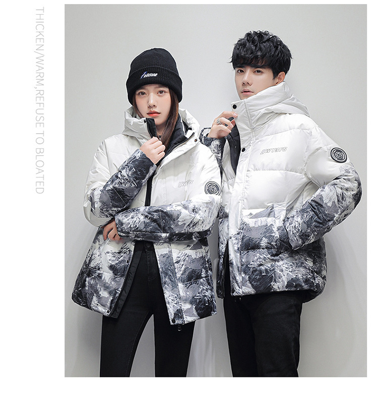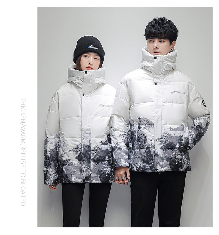 겨울 새 남자 따뜻한 다운 재킷 느슨한 커플 스노우 마운틴 짧은 두꺼운 하이 퀄리티 재킷 남성과 여성스토어 가기