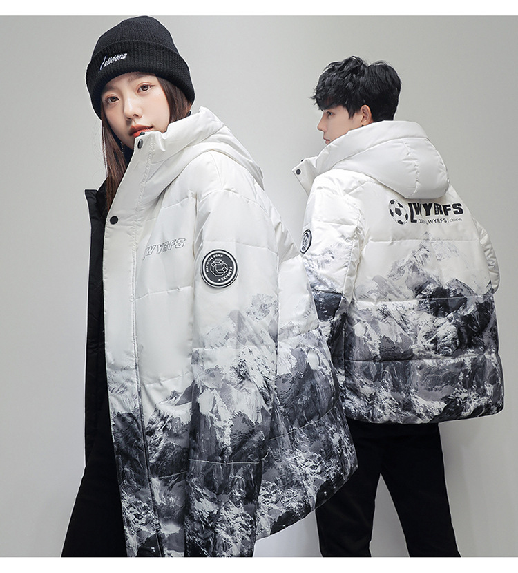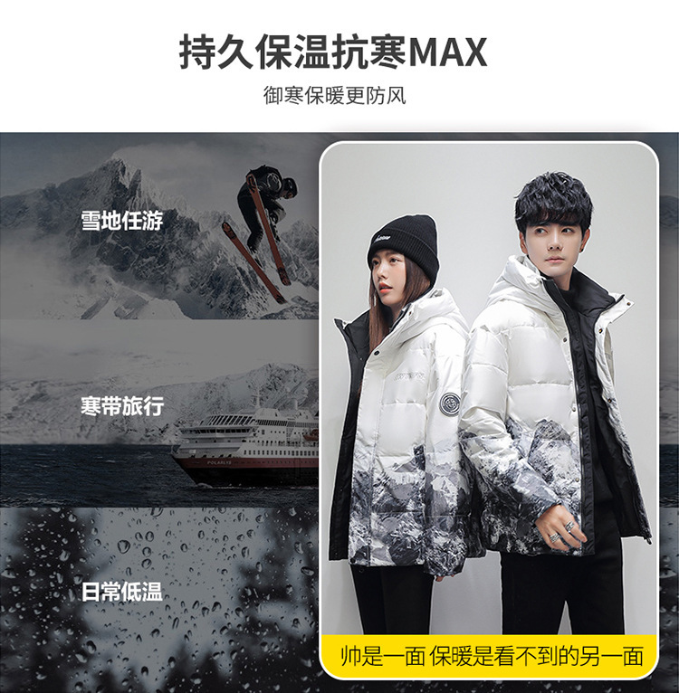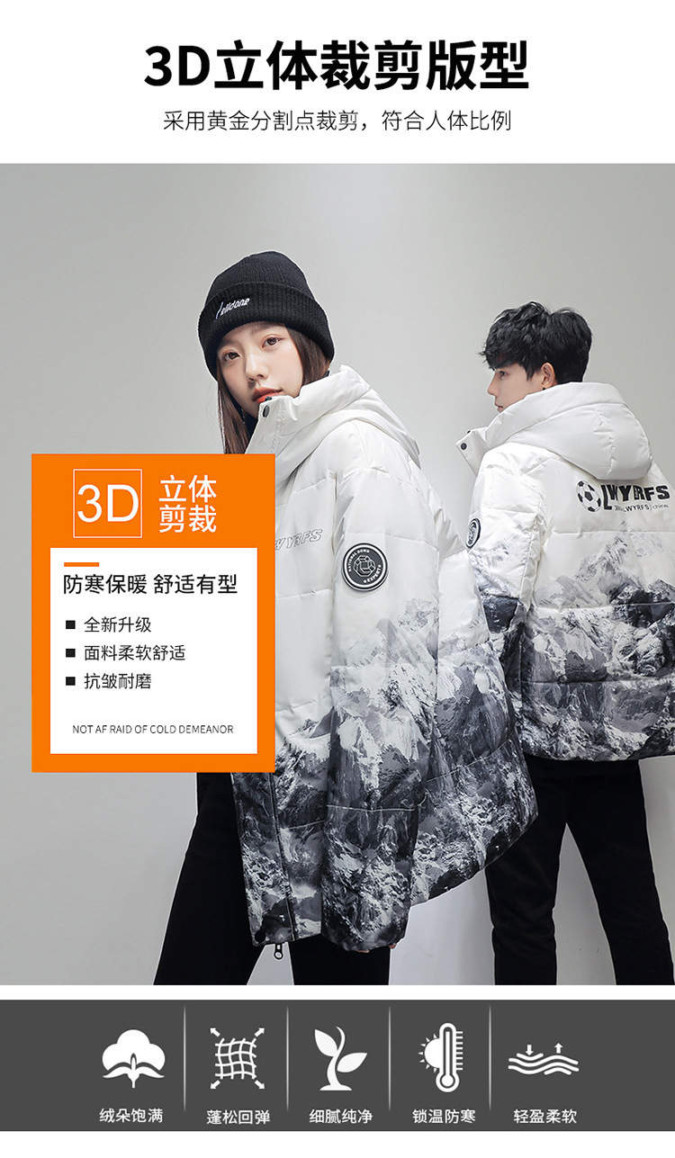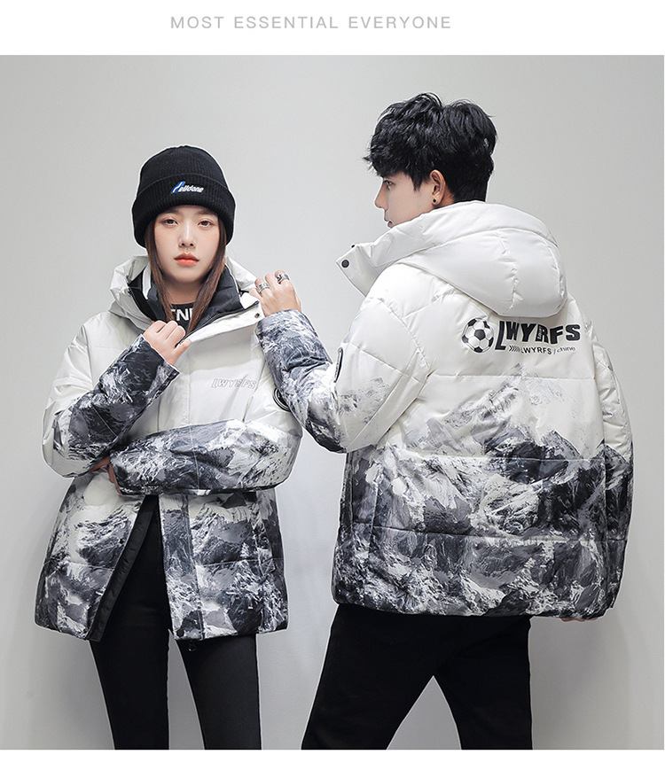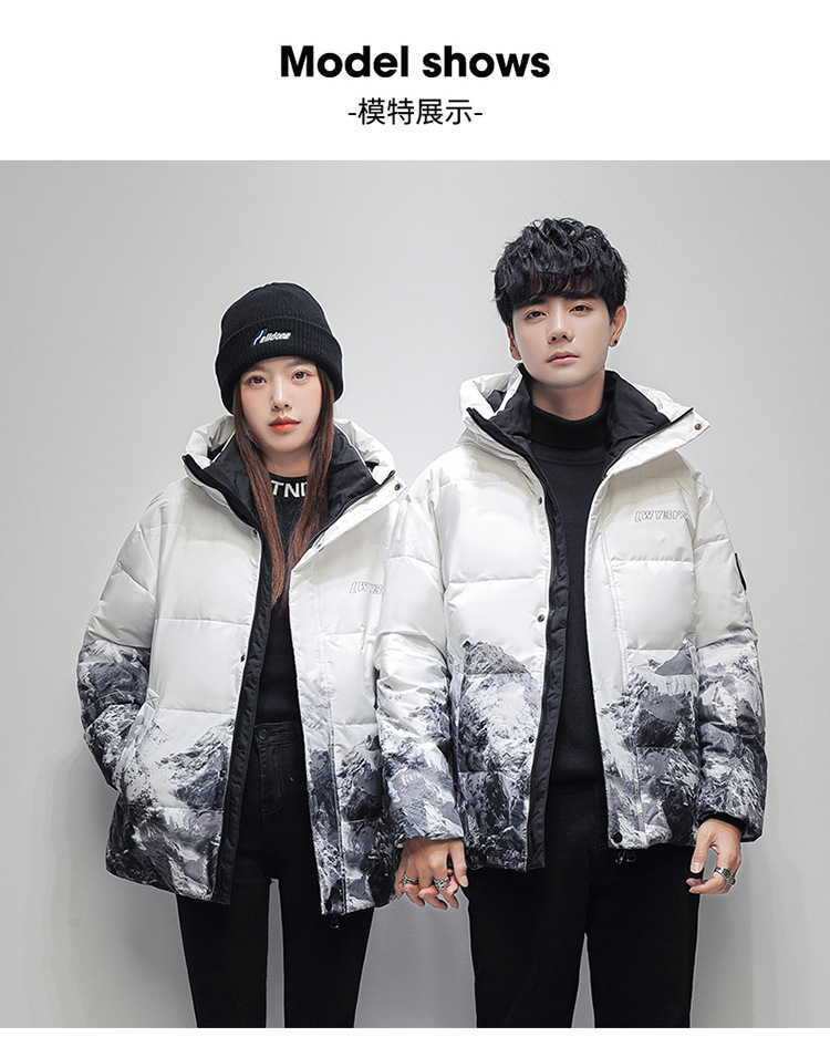 겨울 새 남자 따뜻한 다운 재킷 느슨한 커플 스노우 마운틴 짧은 두꺼운 하이 퀄리티 재킷 남성과 여성스토어 가기