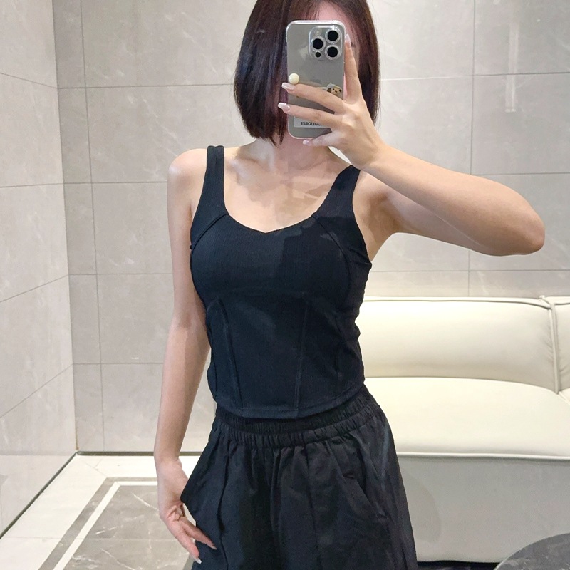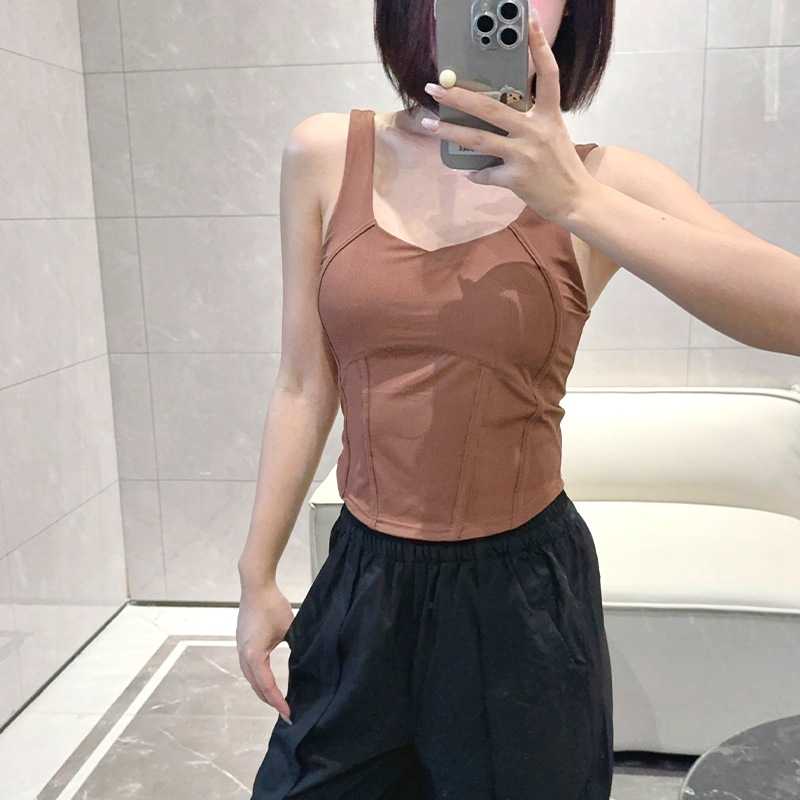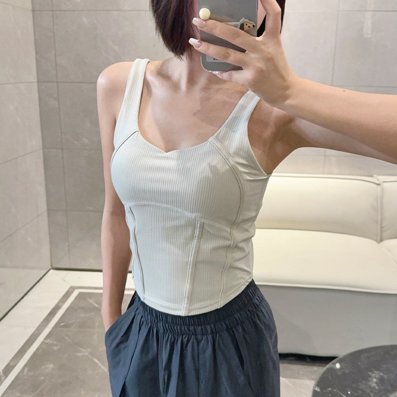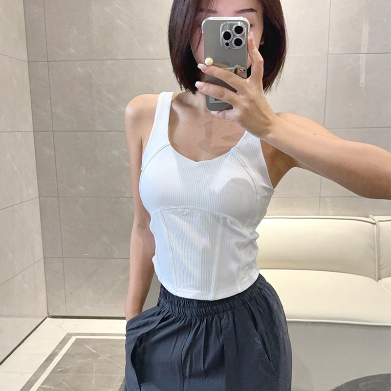 Lulu 스레드 생선 뼈 운동 조끼 Waist-Seamed 여성용 가슴 패드 요가 허리 슬리밍 기사스토어 가기